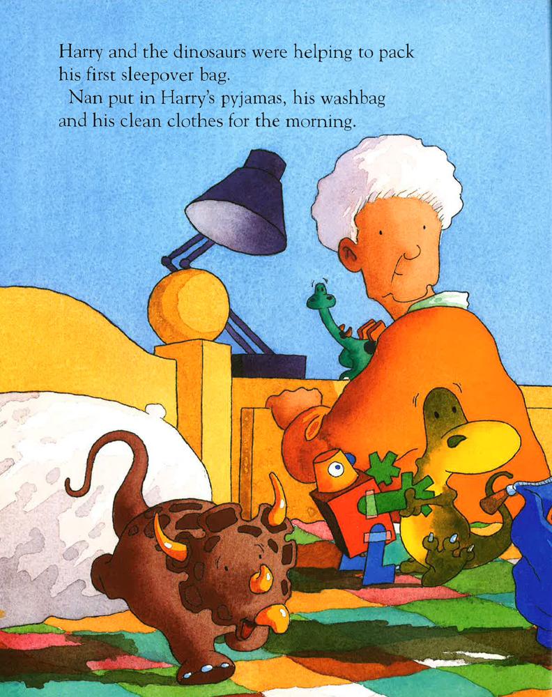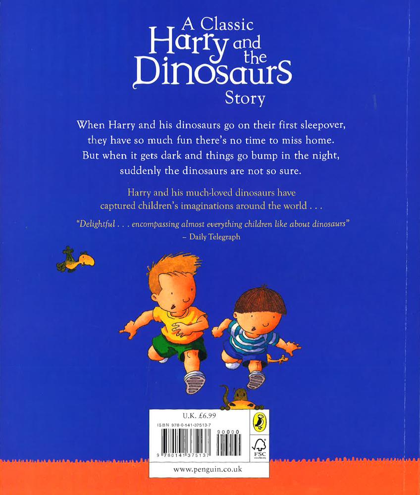When Harry and his dinosaurs go on a sleepover to Jack's house they have so much fun there's no time to miss home. But when it gets dark and things go bump in the night, suddenly the dinosaurs are not so sure. Luckily Harry has his friends to look after him and make sure they all have a roaring good time.