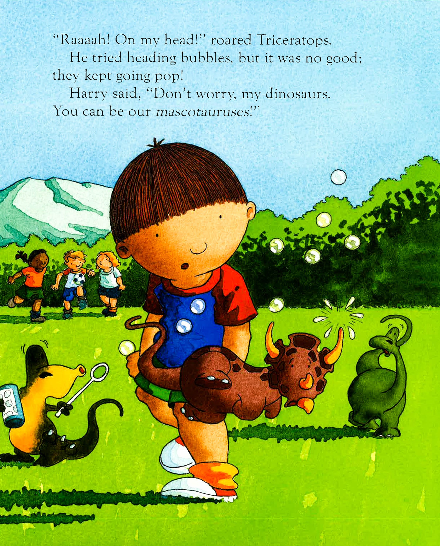 Harry's football team are trying their best, but they just keep getting in each other's way. But, luckily, Harry soon learns the best trick of all... teamwork! So together Harry, his friends and their mascotauruses win the best prize ever... A delightful picture book that young dinosaur fans will love!