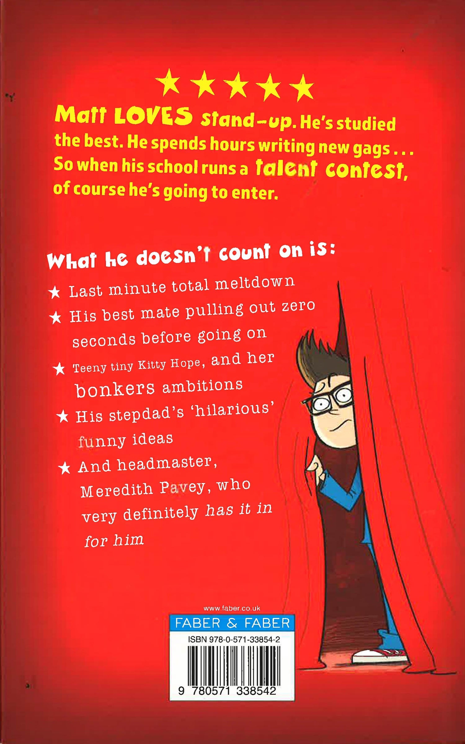 What he doesn't count on is: Last minute total meltdown His best mate pulling out zero seconds before going on Teeny tiny Kitty Hope and her own bonkers ambitions His stepdad's own 'funny' ideas And headmaster, Meredith Pavey, who very definitely has it in for him. Comedy gold from a comedy genius.Open with your best gag. Finish with your second best. Make sure your face matches the material. Sell your routine . . . Matt Millz LOVES stand up comedy. He's studied the best. He's memorized all the advice. He spends hours writing new gags and thinking up crazy sketches . . . So when the school run a talent contest, of course he's going to enter. What he doesn't count on is: Last minute total meltdown His best mate pulling out zero seconds before going on Teeny tiny Kitty Hope and her own bonkers ambitions His stepdad's own 'funny' ideas And headmaster, Meredith Pavey, who very definitely has it in for him. Comedy gold from a comedy genius.