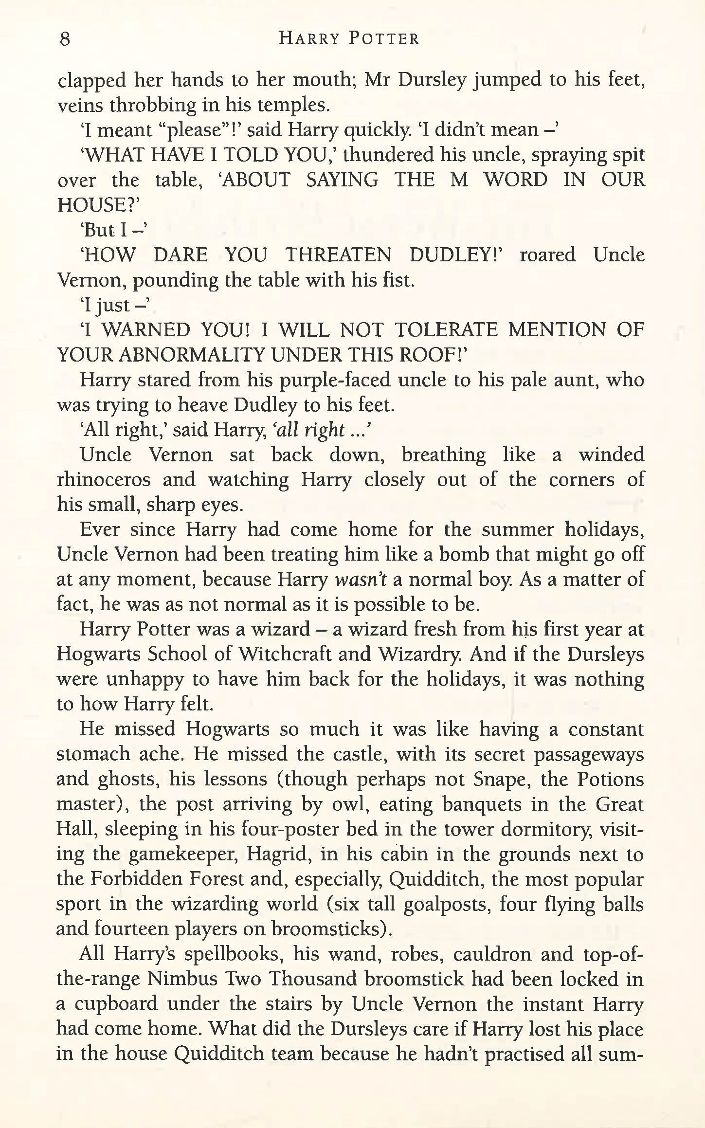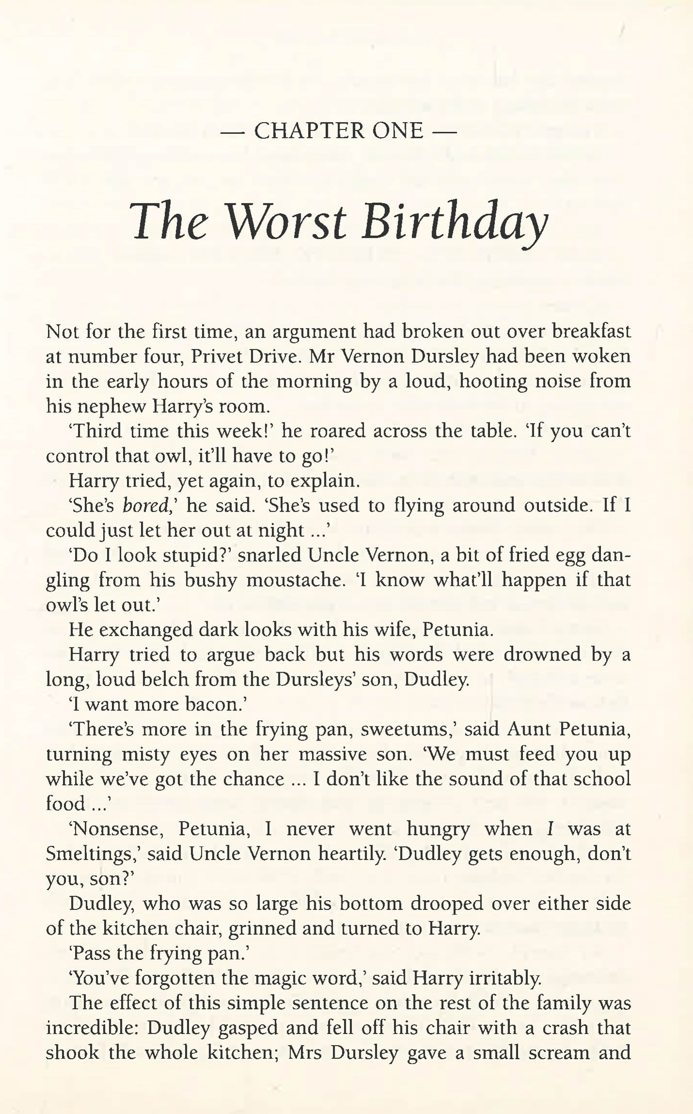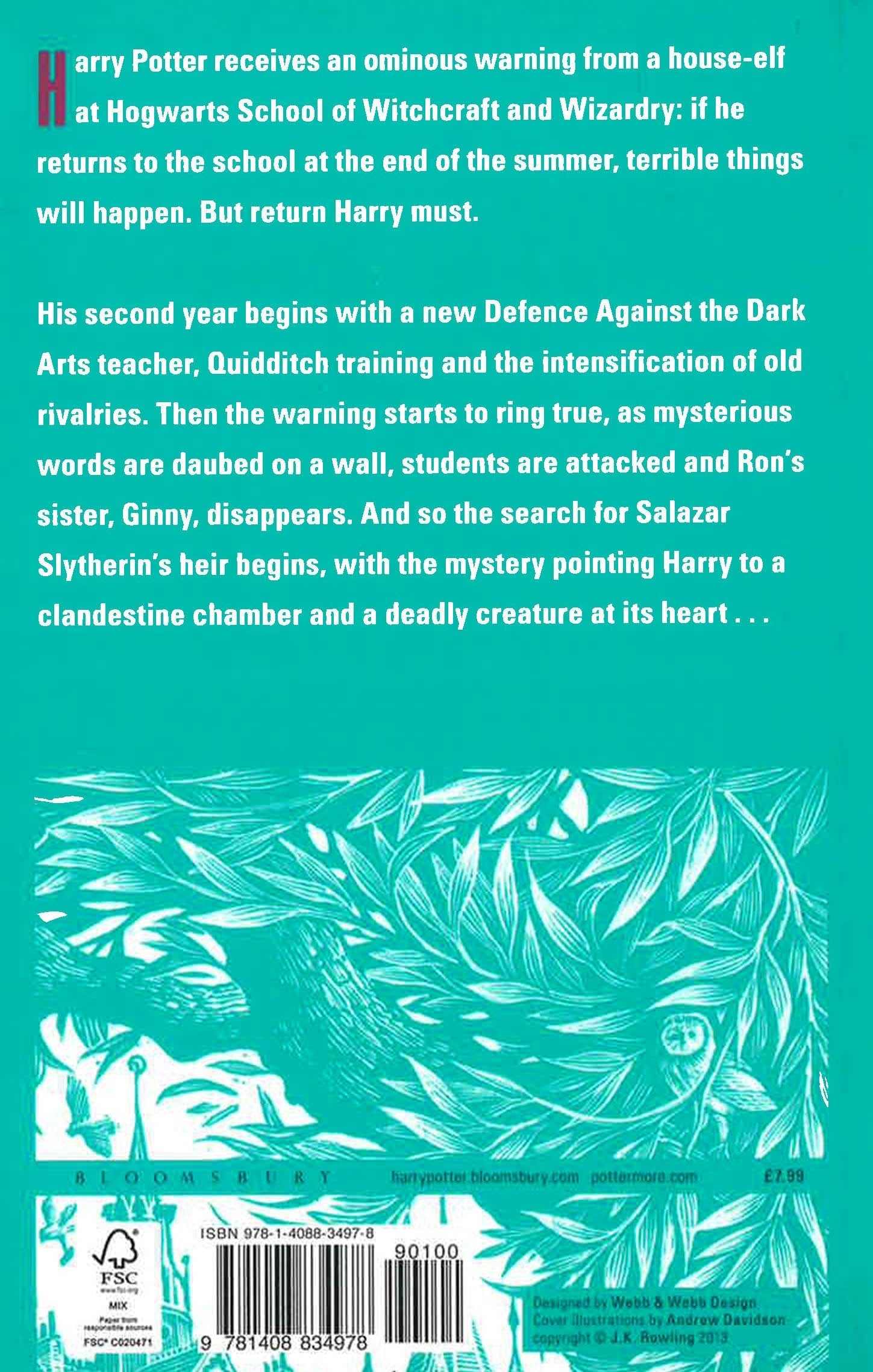 Harry can't wait for his holidays with the dire Dursleys to end. But a small, self-punishing house-elf warns Harry of mortal danger awaiting him at Hogwarts School. Returning to the castle nevertheless, Harry hears a rumour about a chamber of secrets, holding unknown horrors to wizards of Muggle parentage. Now someone is casting spells that turn people to stone, and a terrible warning is found painted on the wall. The chief suspect - always in the wrong place - is Harry. But something much darker has yet to be unleashed.