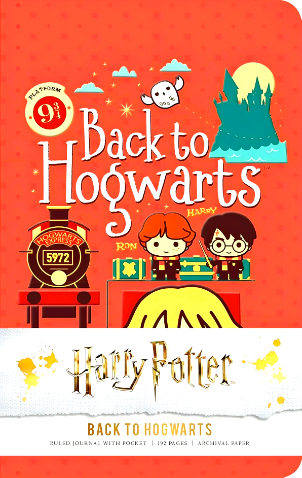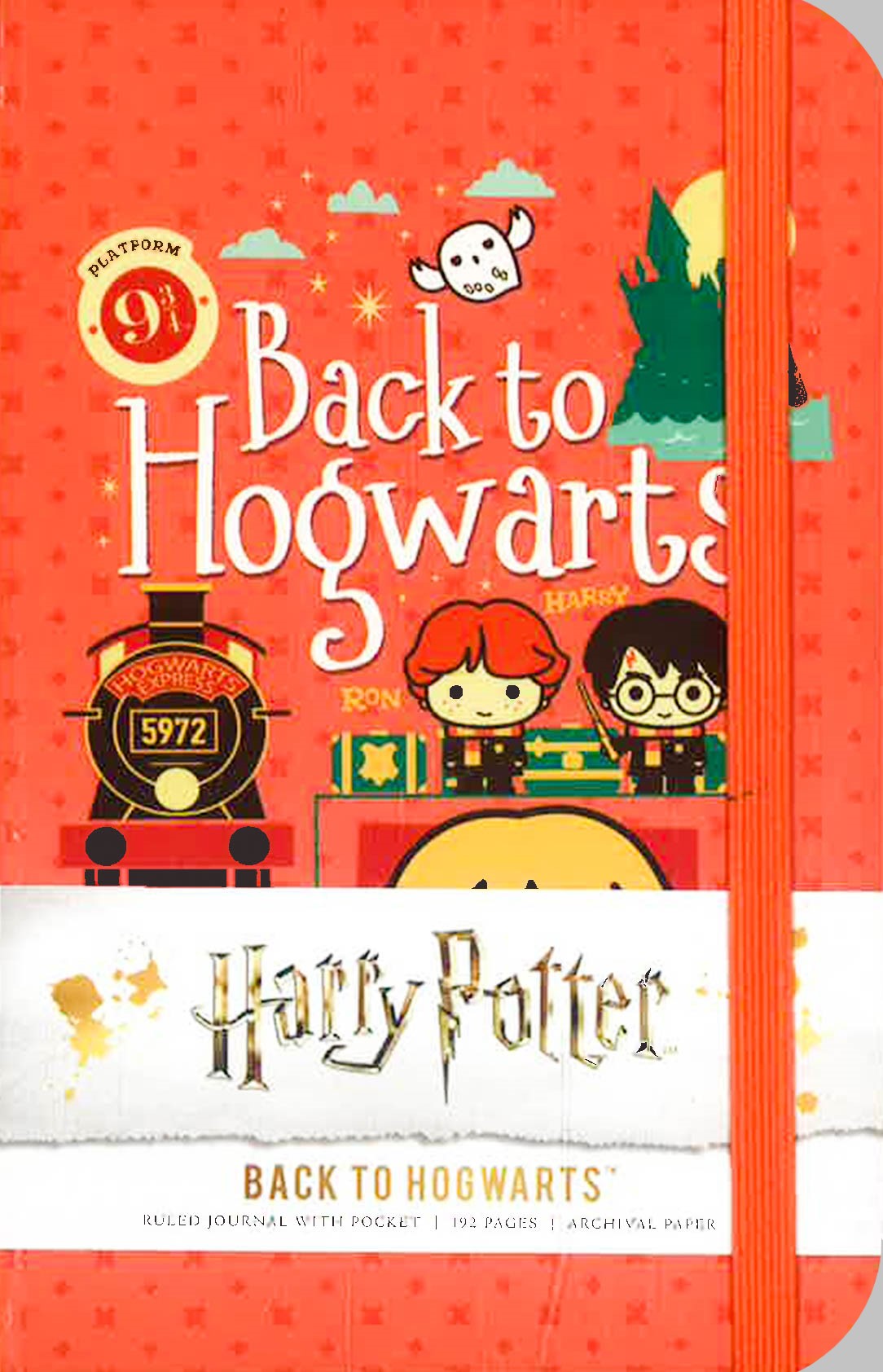 Plan your enchanting return to HOGWARTSTM with this adorable pocket journal. Featuring fun graphics inspired by the HARRY POTTERTM films, this journal lies flat when open and includes 192 ruled pages, a ribbon placeholder, an elastic band, and a back pocket for storing keepsakes and mementos.