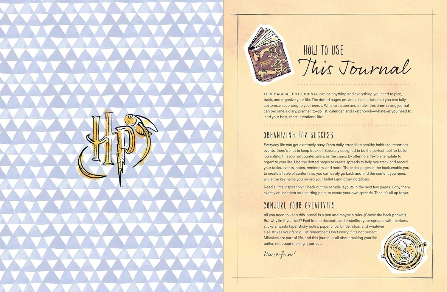 Plan, track, and record your time with this customizable dot journal inspired by the HARRY POTTER films! Featuring a colorful cover emblazoned with striking HOGWARTS iconography, this journal includes 208 dotted and numbered pages for you to fill with your notes, events, sketches, lists, quotes, reminders, and more! The perfect tool for dot journaling, this notebook also includes an index, a back pocket, a ribbon marker, a ruler, and sample layouts for inspiration. With this journal, you’ll have everything you need to stay on track, feel organized, and get a little time back!
