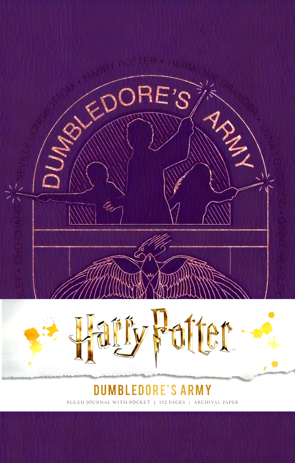 In Harry Potter and the Order of the Phoenix, Harry starts a secret student group dedicated to studying Defence Against the Dark Arts at Hogwarts School of Witchcraft and Wizardry. Now fans can feel like a member of Dumbledore’s Army with this deluxe hardcover ruled journal. This finely crafted journal—one of several new additions to Insight Editions’ best-selling line of Harry Potter journals—displays photography and concept art from the memorable DA scenes in the film, including character snapshots, prop images, and more!