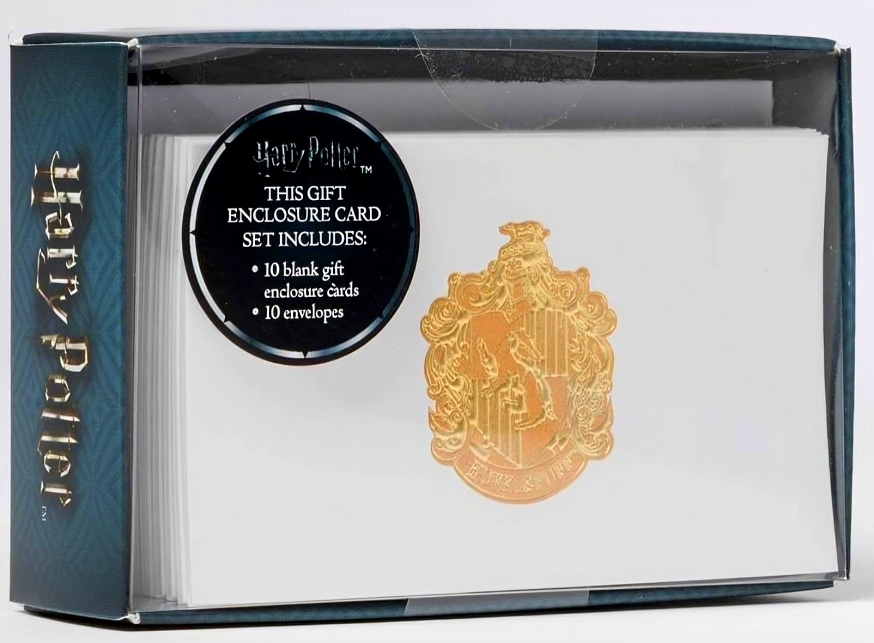 Hufflepuff house is known for its loyalty, a tradition that hails from its founder, Helga Hufflepuff. These blank gift enclosure cards celebrate the iconic house by showcasing its classic badger crest in a clean, minimal design. A perfect accessory to the beloved Harry Potter films, the Hufflepuff Foil Gift Enclosure Cards invite fans to show their love for their favorite house.
