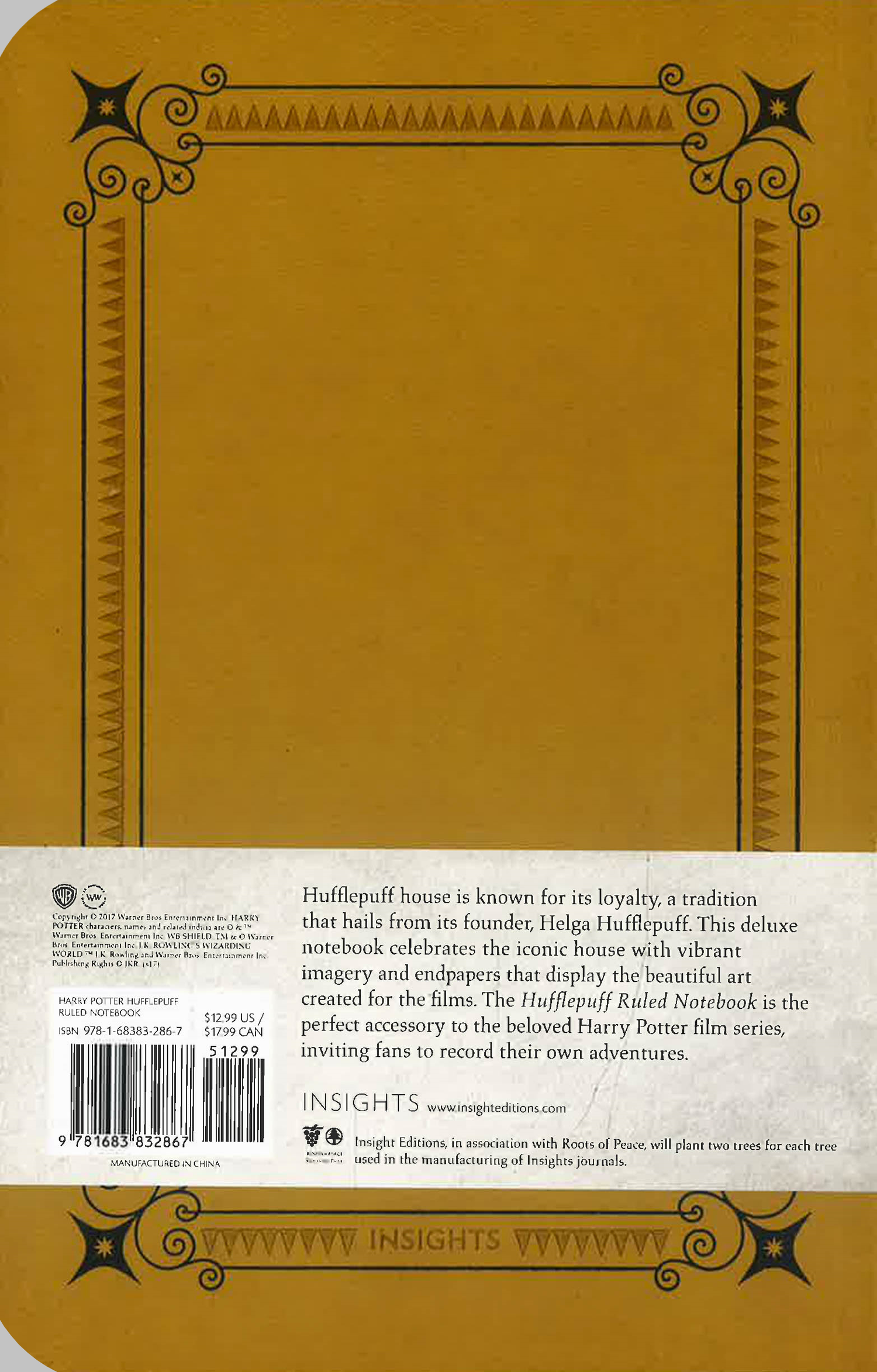 This new addition to Insight Editions’ best-selling Harry Potter stationery line adapts the design of our deluxe hardcover ruled journal in a new softcover format. Featuring a flexible leatherette cover and 128 lined, acid-free pages of high-quality, heavy stock paper, the Harry Potter: Hufflepuff Ruled Notebook takes both pen and pencil nicely to encourage inspiration, inviting fans to record their thoughts and chronicle their adventures.