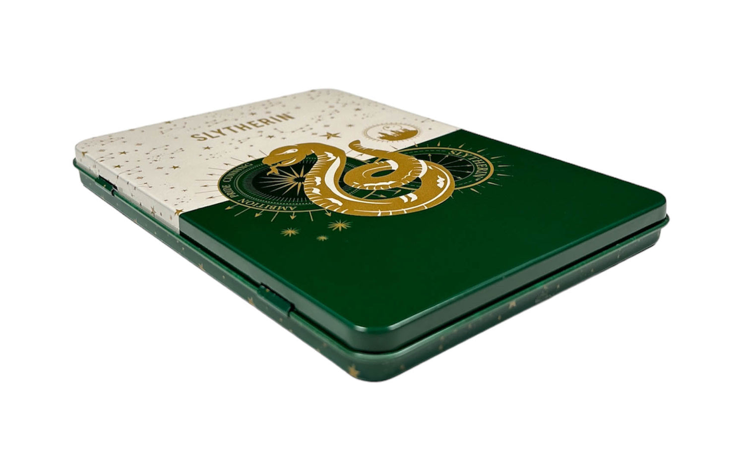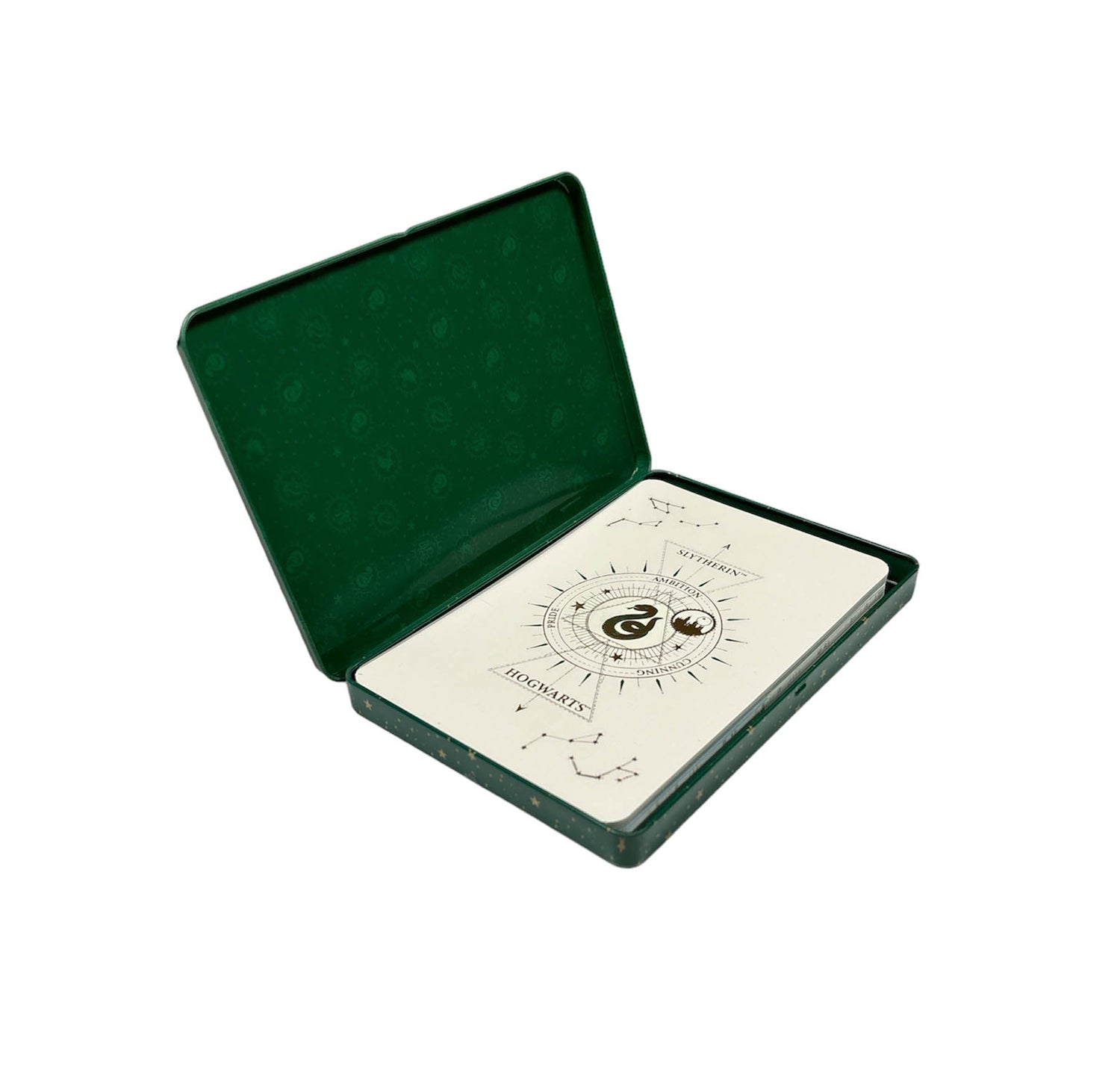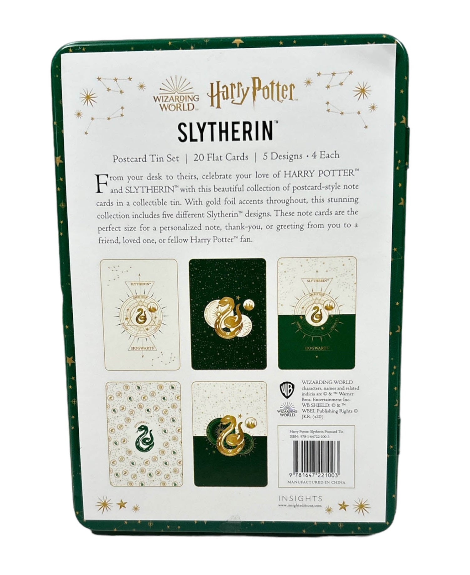 From your desk to theirs, celebrate your love of HARRY POTTER™ and SLYTHERIN™ with this beautiful collection of postcard-style note cards in a collectible tin.