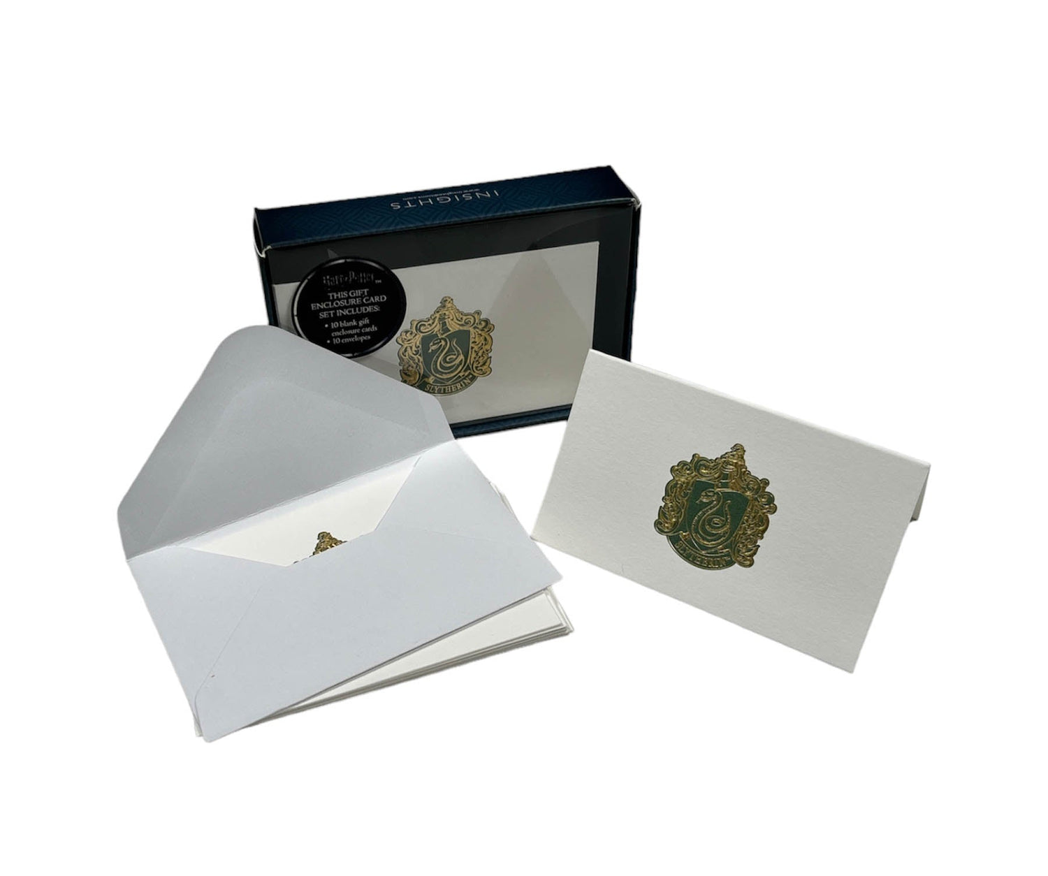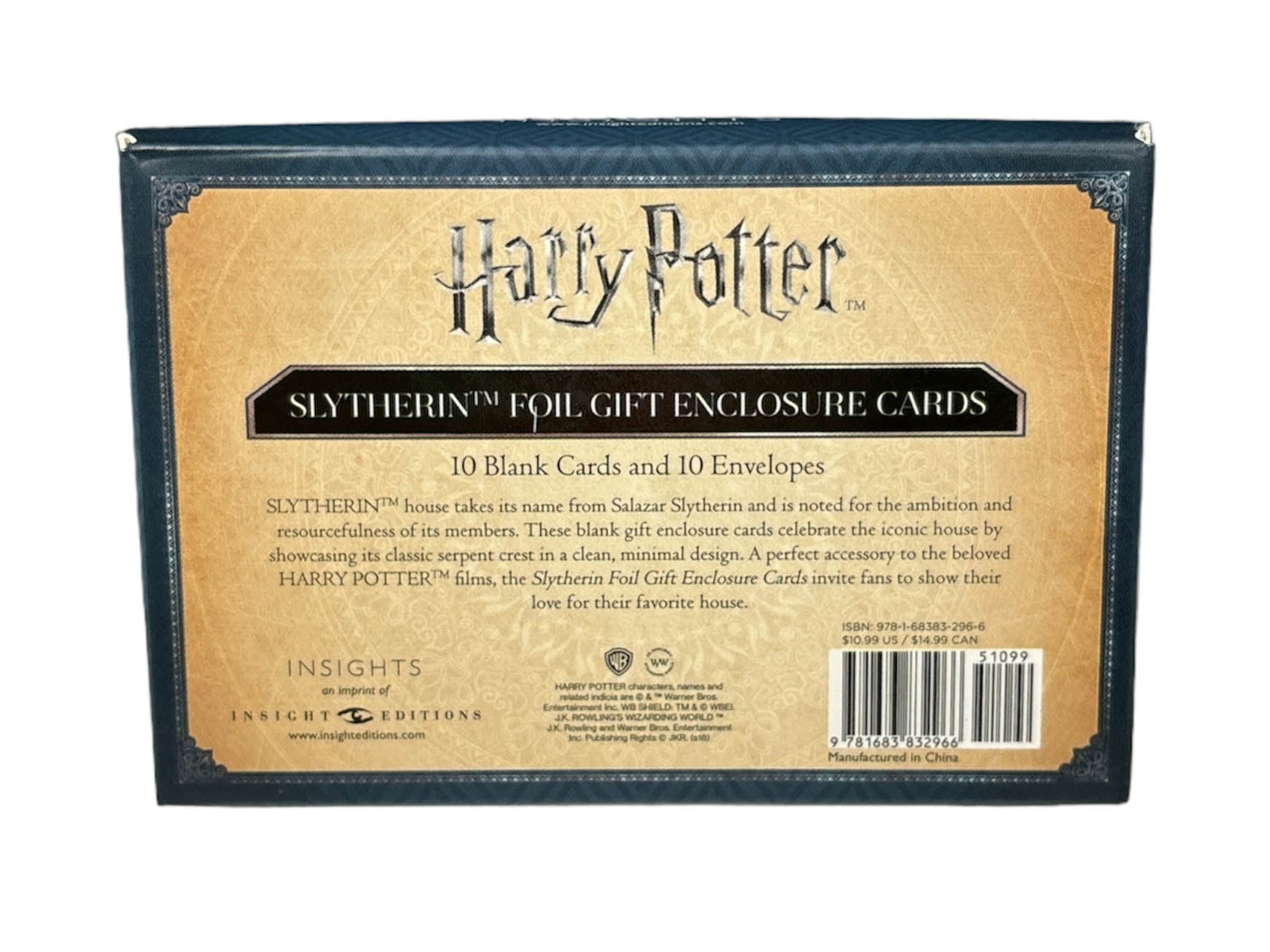 Celebrate the cunning house of Slytherin™ with a classic set of ten Slytherin crest gift enclosure cards, the newest addition to Insight Editions’ best-selling Harry Potter™ stationery series!