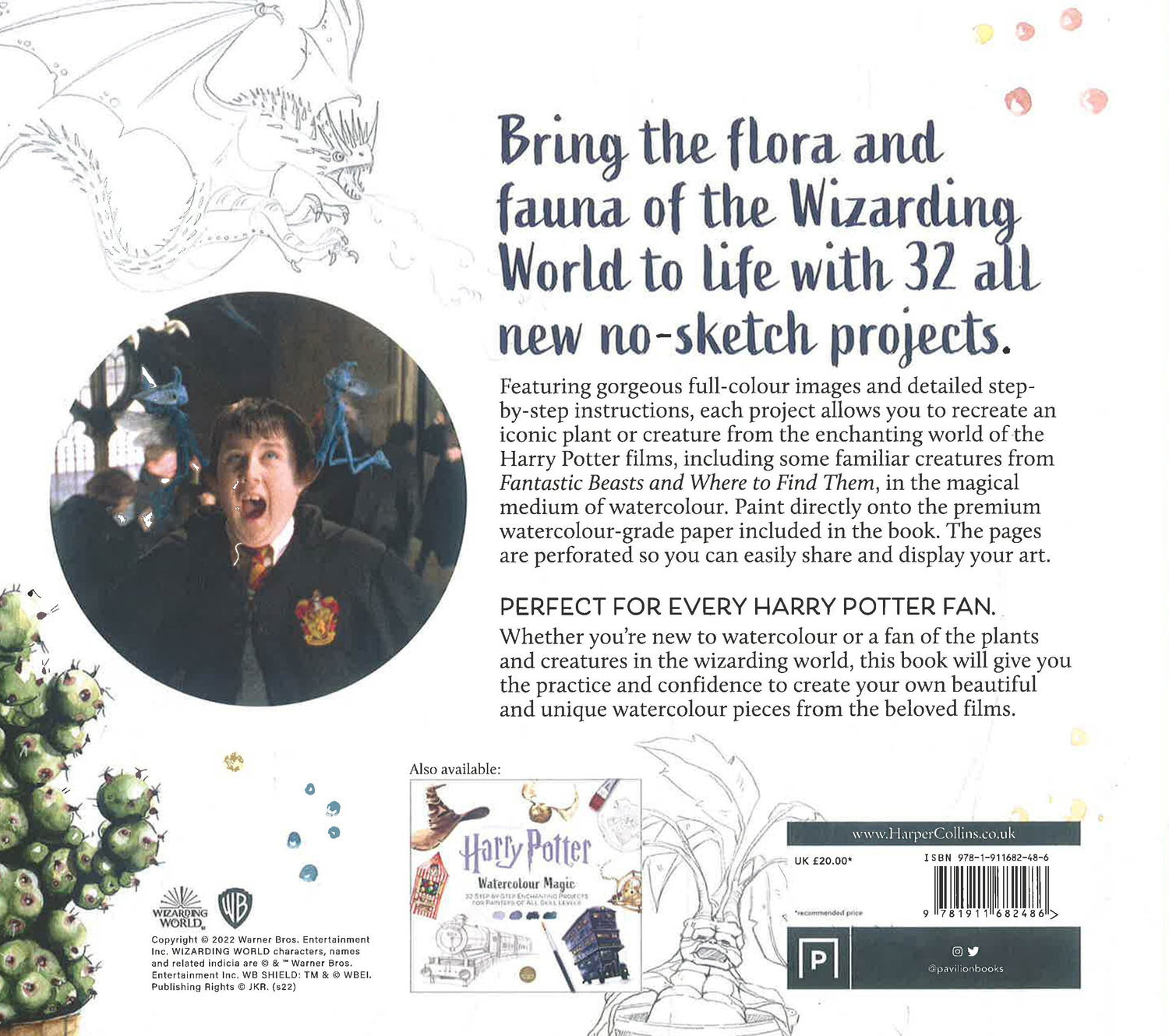 Even more spellbinding step-by-step projects from the Wizarding World; bring the Harry Potter films to life with the second official watercolour book. Harry Potter Watercolour Wizardry includes even more easy-to-complete watercolour projects featuring fan-favourite characters, creatures, places and icons from the films.