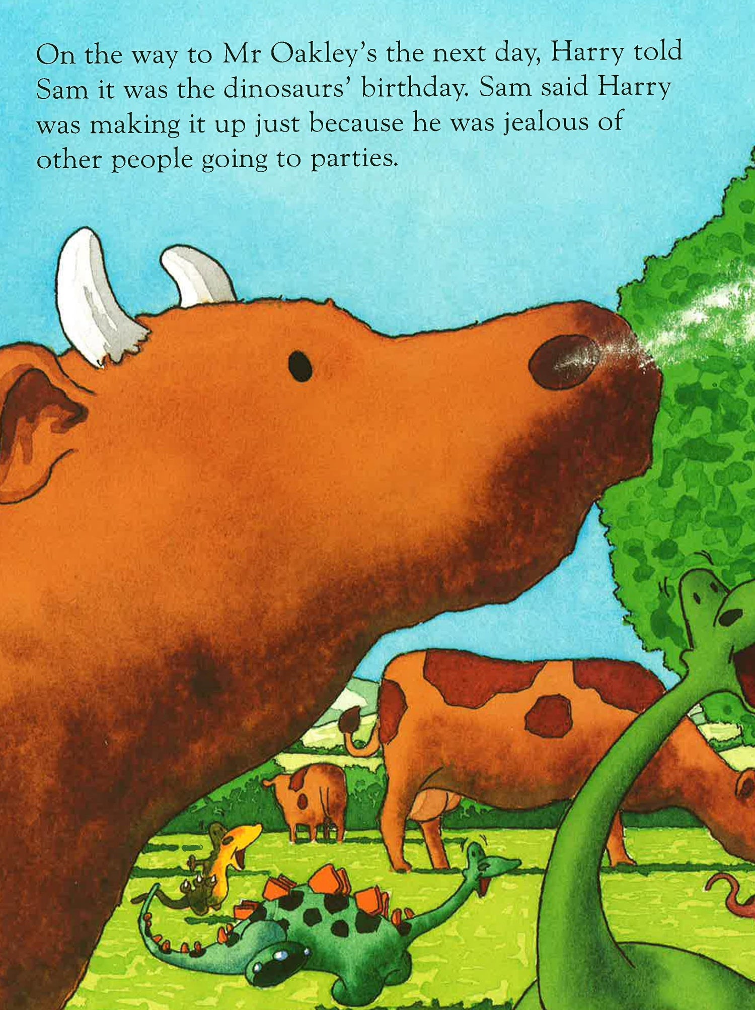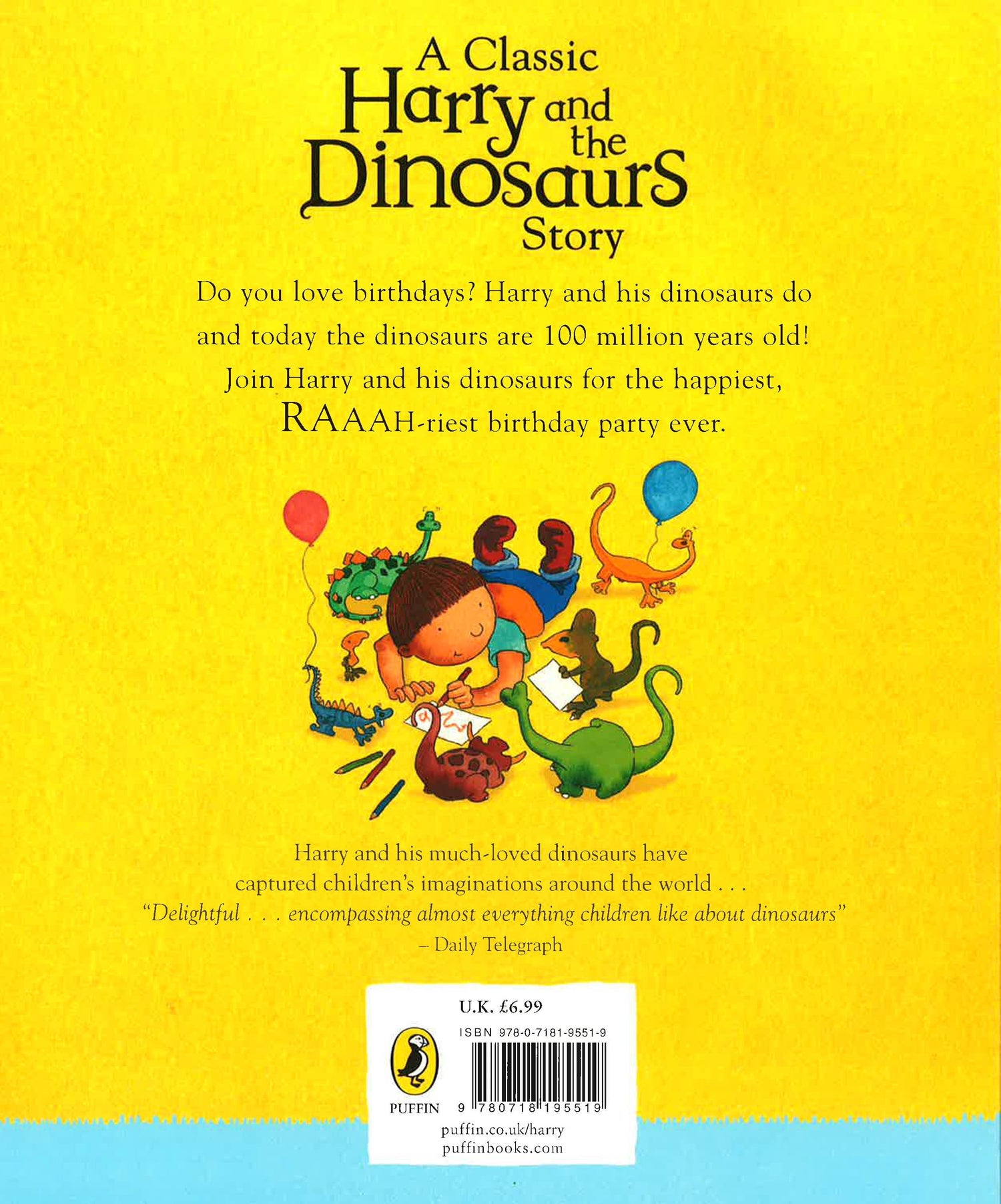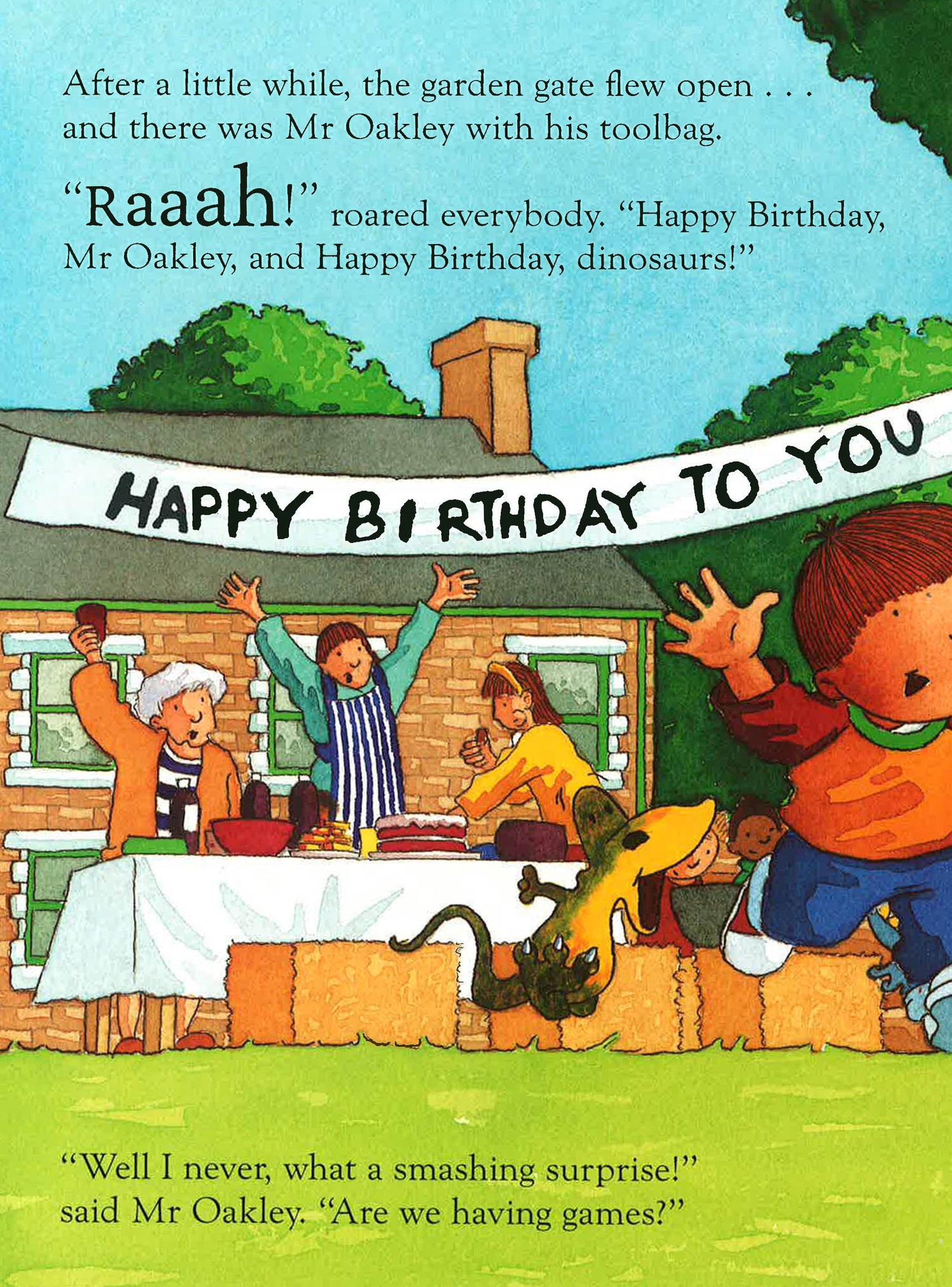 Harry and his dinosaurs love birthday parties, so Harry's disappointed when big sister, Sam, says she's going to one - alone. Not only is it Mr Oakley's birthday, but Harry finds out that it's the dinosaurs' one hundred millionth birthday too! Harry decides to throw a surprise birthday party and soon even Sam helps to make the party treats. Mum invites Mr Oakley over and he is very surprised when he arrives; in fact, everyone agrees that it's the best birthday party ever! A wonderfully mischievous tale for toddlers who love dinosaurs!