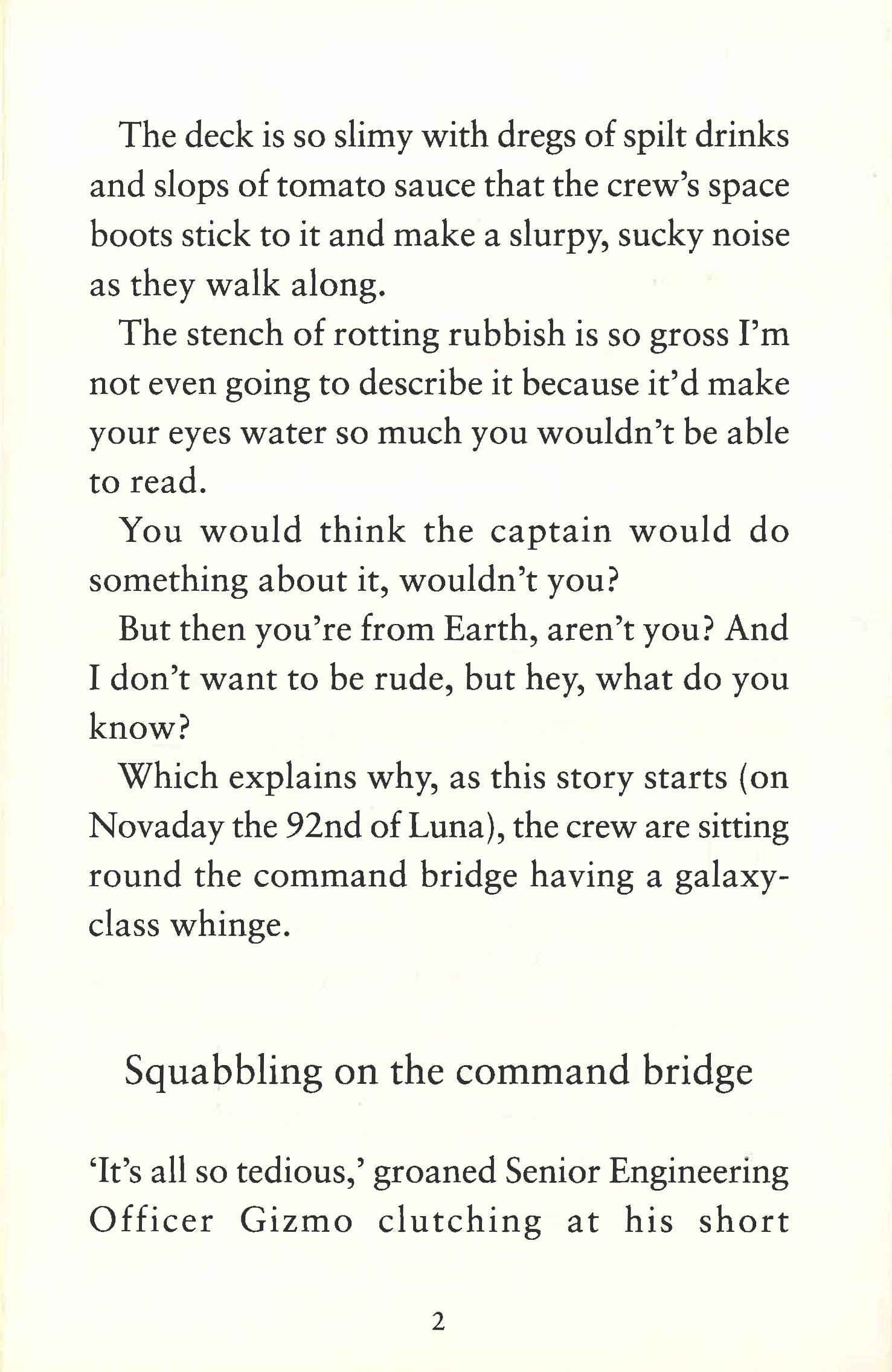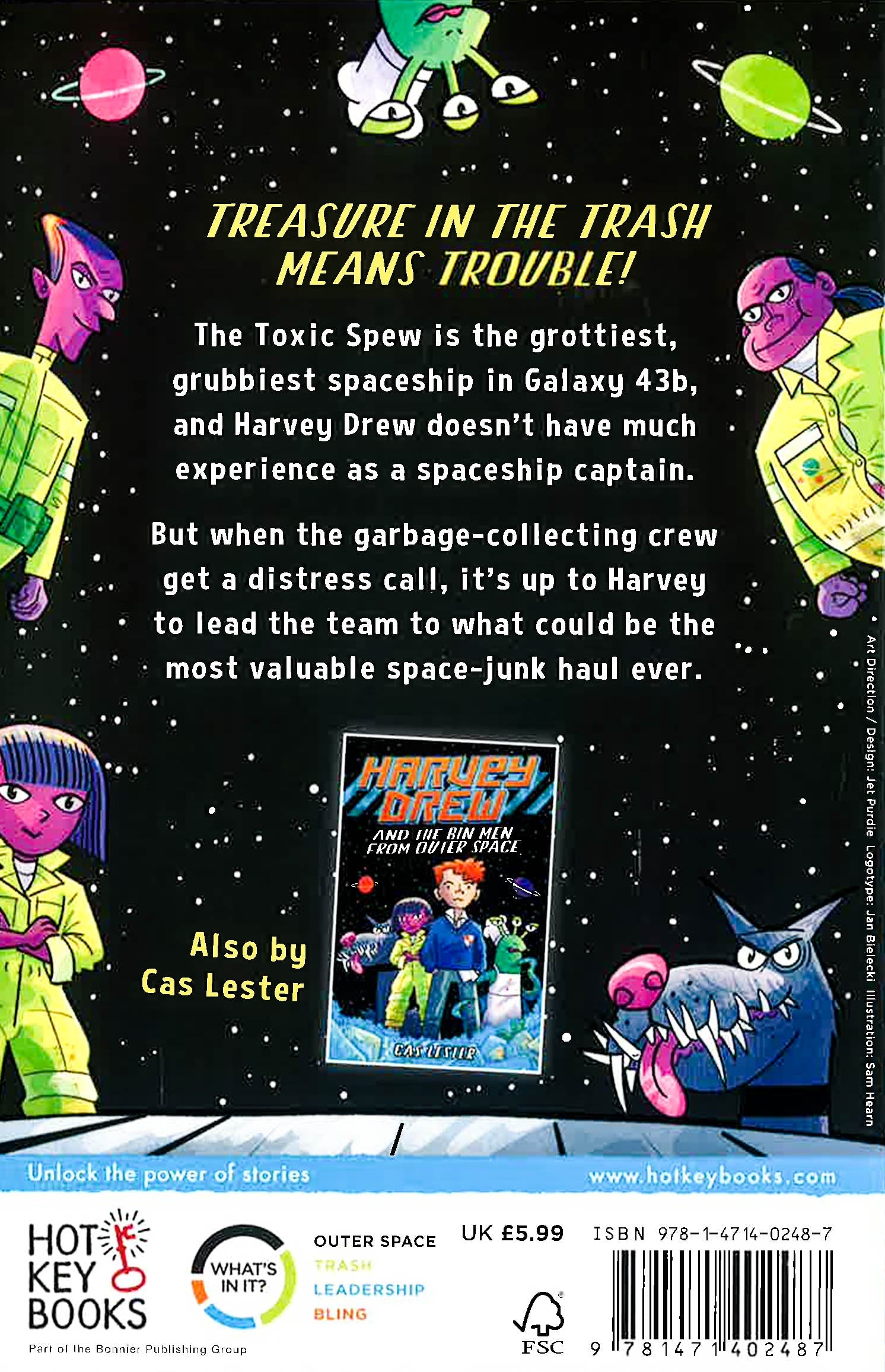 Harvey Drew and the Toxic Spew crew return for another out-of-this-world adventure! Harvey thinks he has the best job in the world: he's stumbled into being captain of a real live space ship! Except it's the Toxic Spew - the filthiest, grubbiest, and definitely the most dysfunctional garbage ship in the known galaxy. And with the most argumentative and chaotic crew on board. While on their way to the next rubbish pick-up, the crew get word of a stranded cargo ship that happens to be carrying the most valuable substance in the Known Universe, and Beyond - Techno-tium. Whoever rescues the cargo gets to claim it. Thinking they will soon be disgustingly rich, the crew aims their ship towards the treasure. But they don't bet on running into the most notorious and ruthless pirates around: the Bling Bots from the planet Sy-Boorg! Harvey must try and save the day again - before the Toxic Spew gets disposed of itself, once and for all.