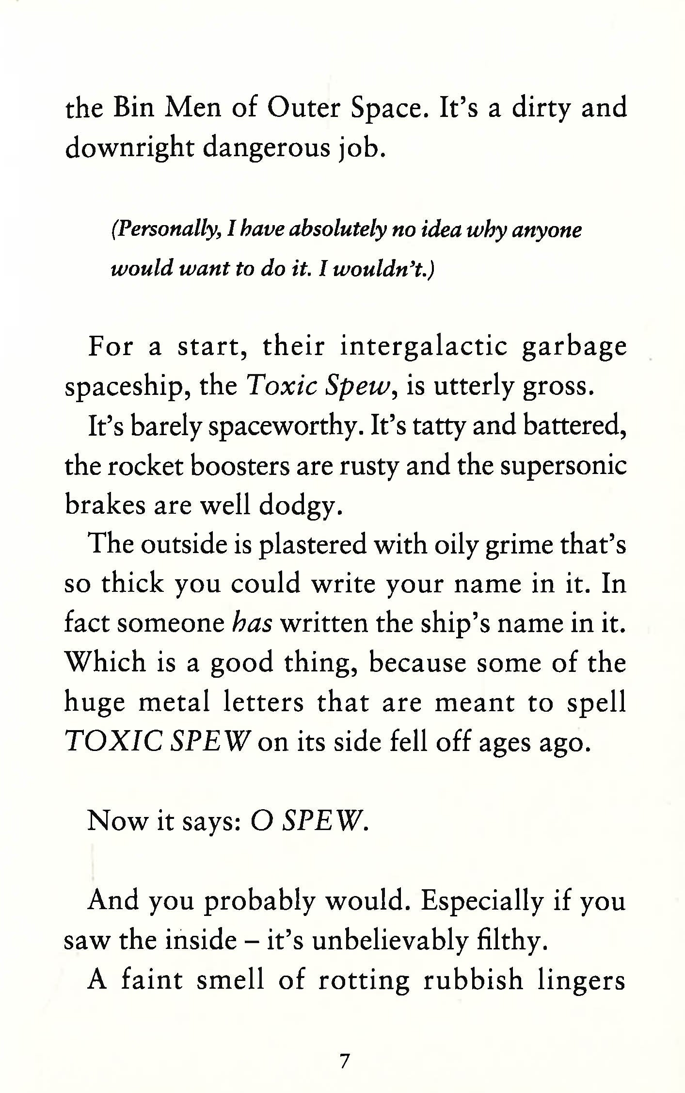 Harvey Drew is an ordinary eleven-year-old who dreams of great adventures in outer space. The Toxic Spew is an intergalactic waste disposal ship. The two are on a collision course for chaos!