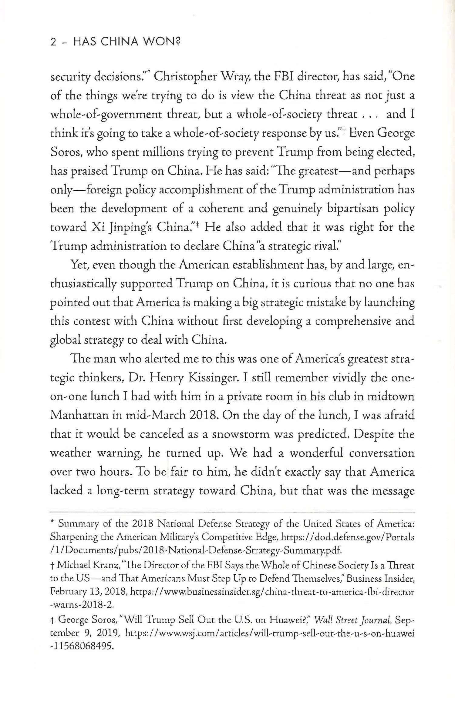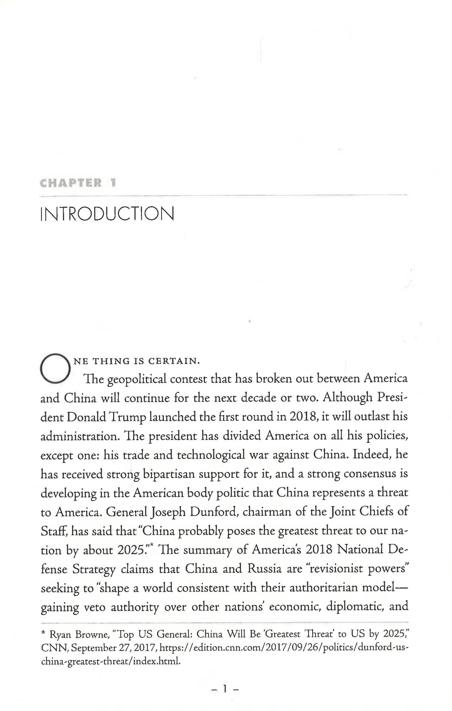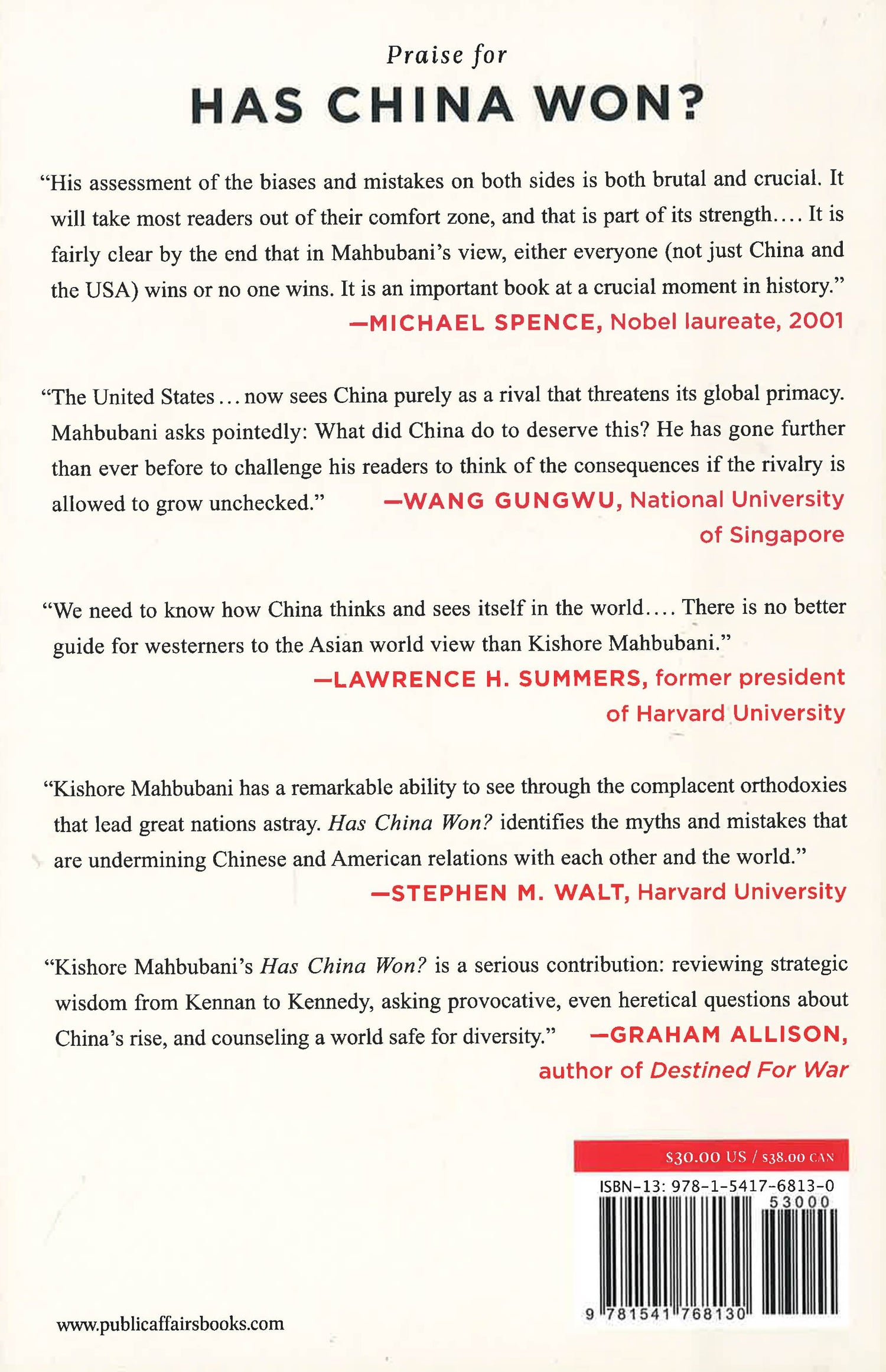 The twenty-first century's great geopolitical contest has begun. A major trade war has broken out. American and Chinese naval vessels are having close encounters in the South China Sea. American congressmen and businessmen are cheering their government's public attacks on China. China is standing firm and resolute. Who will win this contest? What is at stake? And who will judge the winner?In this book, Kishore Mahbubani evaluates the two sides, and shows how China has been thinking on a global scale, launching ambitious initiatives under some of the world's most pragmatic and competent leaders. Most critically, the Chinese people have regained their cultural confidence. Chinese society is now infused with innovation and dynamism. Meanwhile, America has seen the power of its economic model badly damaged by the 2008 financial crisis. To many it is no longer the indispensable nation but an awkward interloper.The global rise of China and the relative strategic decline of the US presents a political challenge that the US has never faced before. American policymakers must shake off their complacency and launch a major strategic reboot of both domestic and foreign policies that have weakened the nation's social foundations and global standing. Otherwise, the start-up nation, barely two hundred and fifty years old, with only a quarter of China's population, cannot expect to defeat the world's oldest continuous civilization. With his trademark candor, Mahbubani delivers impartial and incisive insights on the strategic stakes and mistakes in this new great game.