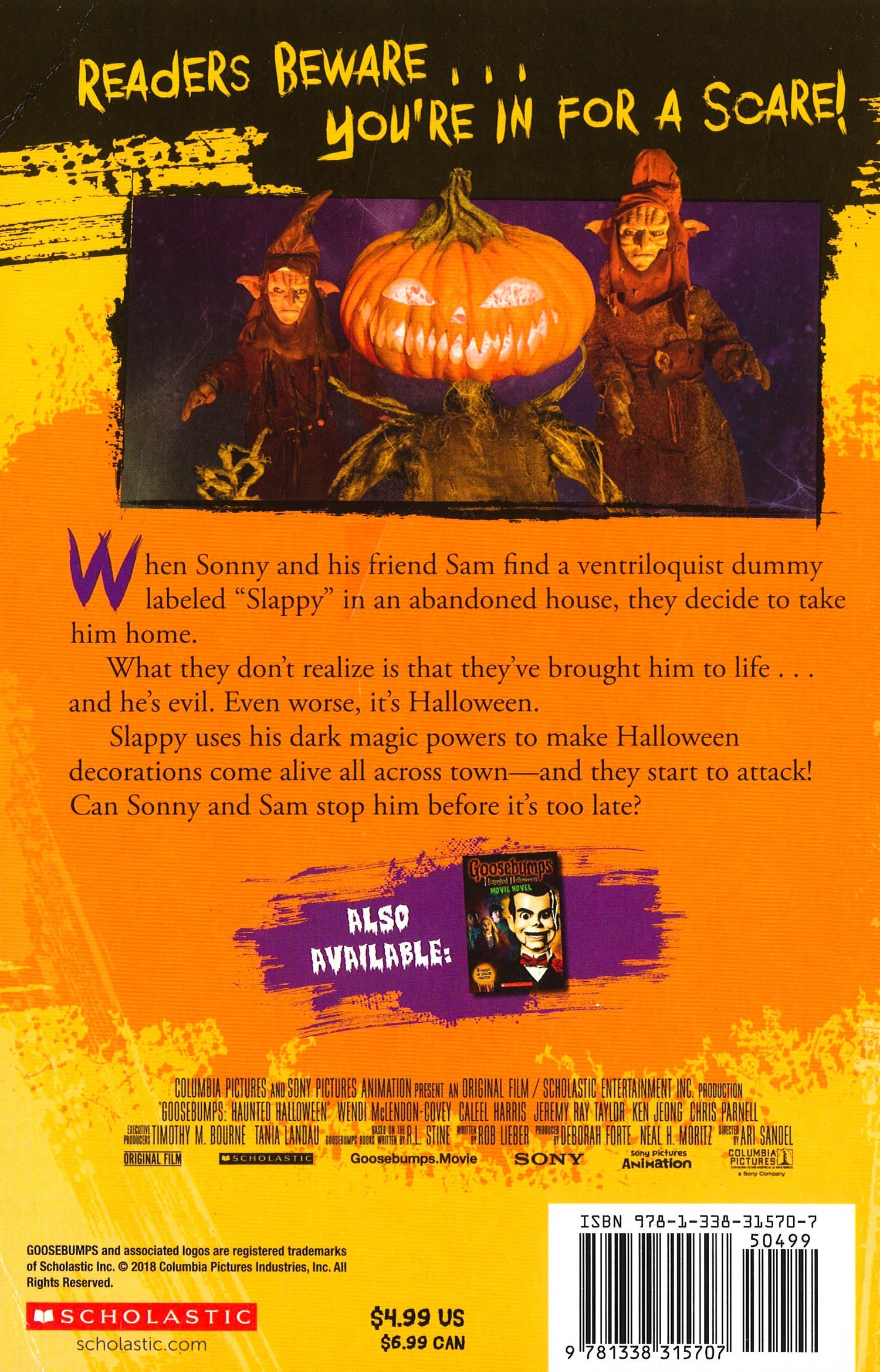 Slappy's back! The demented dummy and all his creepy pals are back for this sequel to the hit 2015 Goosebumps movie. Scholastic's early reader has all the chills, thrills, and laugh-out-loud horror of the new movie, due in theaters October 12, 2018. Illustrated with 48 pages of color photos from the movie!