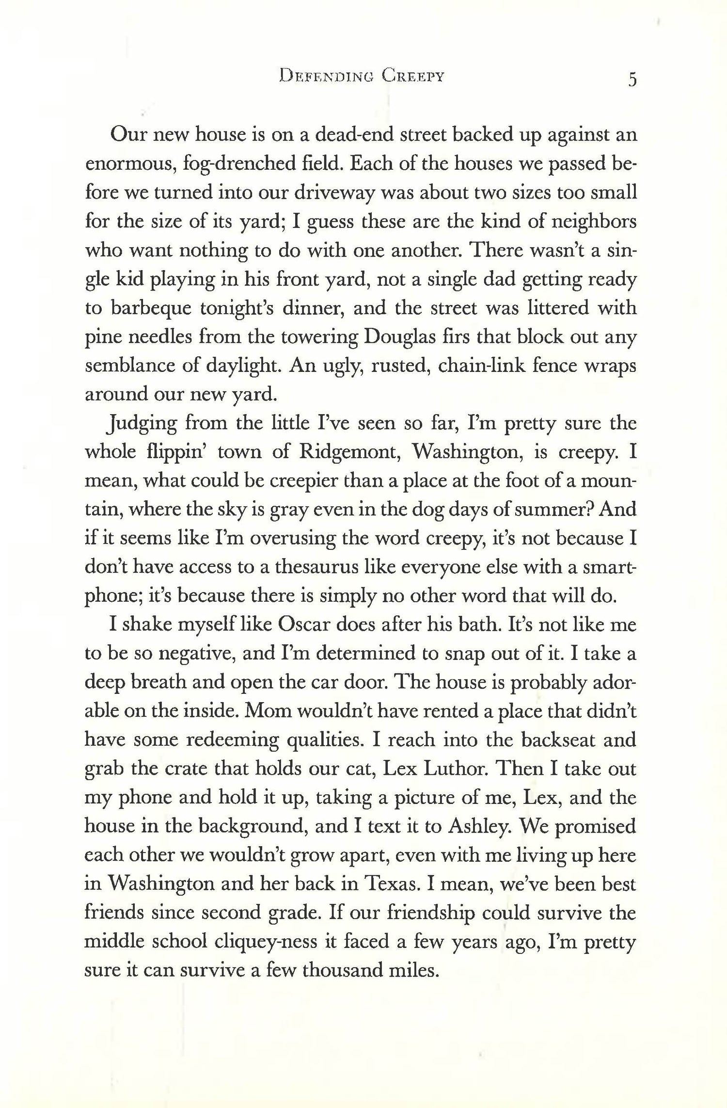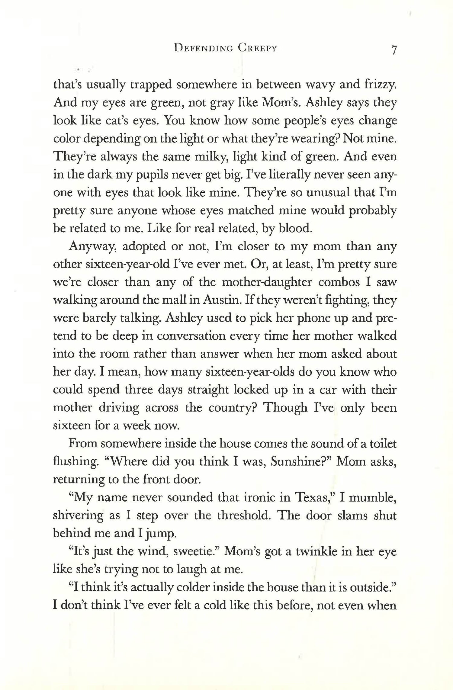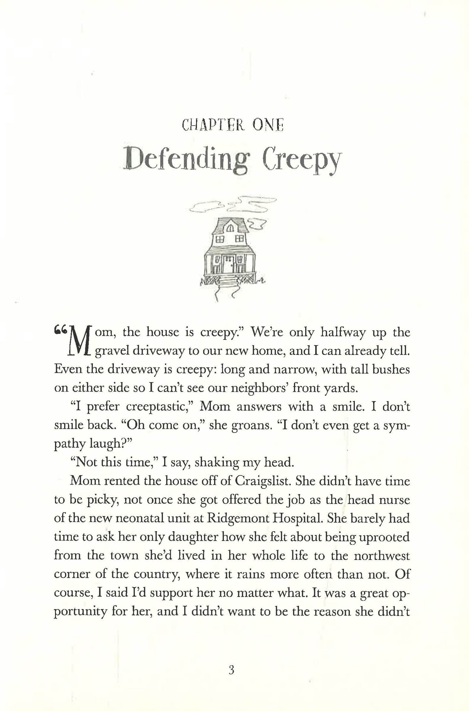 Shortly after her sixteenth birthday, Sunshine Griffith and her mother Kat move from sunny Austin, Texas, to the rain-drenched town of Ridgemont, Washington. Though Sunshine is adopted, she and her mother have always been close, sharing a special bond filled with laughter and inside jokes. But from the moment they arrive, Sunshine feels her world darken with an eeriness she cannot place. And even if Kat doesn't recognize it, Sunshine knows that something about their new house is just ... creepy. In the days that follow, things only get stranger. Sunshine is followed around the house by an icy breeze, phantom wind slams her bedroom door shut, and eventually, the laughter Sunshine hears on her first night evolves into sobs. She can hardly believe it, but as the spirits haunting her house become more frightening-and it becomes clear that Kat is in danger - Sunshine must accept what she is, pass the test before her, and save her mother from a fate worse than death.