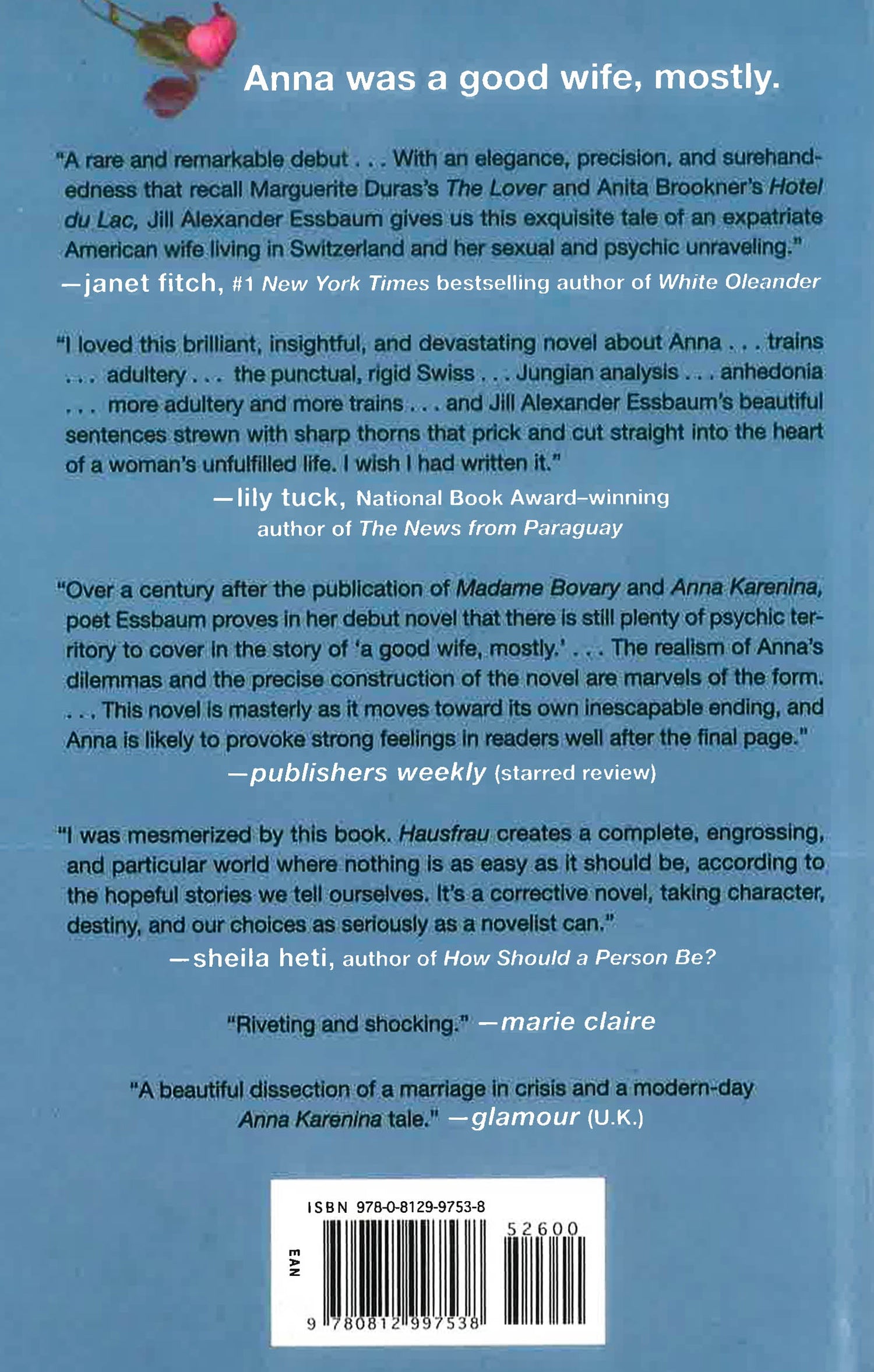 "NEW YORK TIMES" BESTSELLER - "Sexy and insightful, this gorgeously written novel opens a window into one woman's desperate soul."--"People"Anna was a good wife, mostly. For readers of "The Girl on the Train" and "The Woman Upstairs" comes a striking debut novel of marriage, fidelity, sex, and morality, featuring a fascinating heroine who struggles to live a life with meaning--"a modern-day Anna Karenina tale."*""Anna Benz, an American in her late thirties, lives with her Swiss husband, Bruno--a banker--and their three young children in a postcard-perfect suburb of ZUrich. Though she leads a comfortable, well-appointed life, Anna is falling apart inside. Adrift and increasingly unable to connect with the emotionally unavailable Bruno or even with her own thoughts and feelings, Anna tries to rouse herself with new experiences: German language classes, Jungian analysis, and a series of sexual affairs she enters with an ease that surprises even her.But Anna can't easily extract herself from these affairs. When she wants to end them, she finds it's difficult. Tensions escalate, and her lies start to spin out of control. Having crossed a moral threshold, Anna will discover where a woman goes when there is no going back.Intimate, intense, and written with the precision of a Swiss Army knife, Jill Alexander Essbaum's debut novel is an unforgettable story of marriage, fidelity, sex, morality, and most especially self. Navigating the lines between lust and love, guilt and shame, excuses and reasons, Anna Benz is an electrifying heroine whose passions and choices readers will debate with recognition and fury. Her story reveals, with honesty and great beauty, how we create ourselves and how we lose ourselves and the sometimes disastrous choices we make to find ourselves.Praise for "Hausfrau""Elegant, erotic . . . There is much to admire in Essbaum's intricately constructed, meticulously composed novel, including its virtuosic intercutting of past and present."--"Chicago Tribune"" ""For a first novelist, Essbaum is extraordinary because she is a poet. Her language is meticulous and resonant and daring."--NPR's "Weekend Edition"" ""We're in literary territory as familiar as Anna's name, but Essbaum makes it fresh with sharp prose and psychological insight."--"San Francisco Chronicle""Essbaum's poignant, shocking debut novel rivets."--"Us Weekly""A powerful, lyrical novel . . . "Hausfrau" boasts taut pacing and melodrama, but also a fully realized heroine as love-hateable as Emma Bovary and a poet's fascination with language."--"The Huffington Post"" ""Imagine Tom Perrotta's American nowheresvilles swapped out for a tidy ZUrich suburb, sprinkled liberally with sharp riffs on Swiss-German grammar and European hypocrisy."--"New York"" ""Brain-surgically constructed to fascinate you, entertain you, and then make you question what a life lived with meaning looks like--all with a sense of poetic discipline and introspection."--"Los Angeles Magazine""["Hausfrau"] is masterly as it moves toward its own inescapable ending."--"Publishers Weekly" (starred review)""Madame Bovary" meets "Fifty Shades of Grey.""--"Sunday Express" (U.K.)*"Glamour "(U.K.)