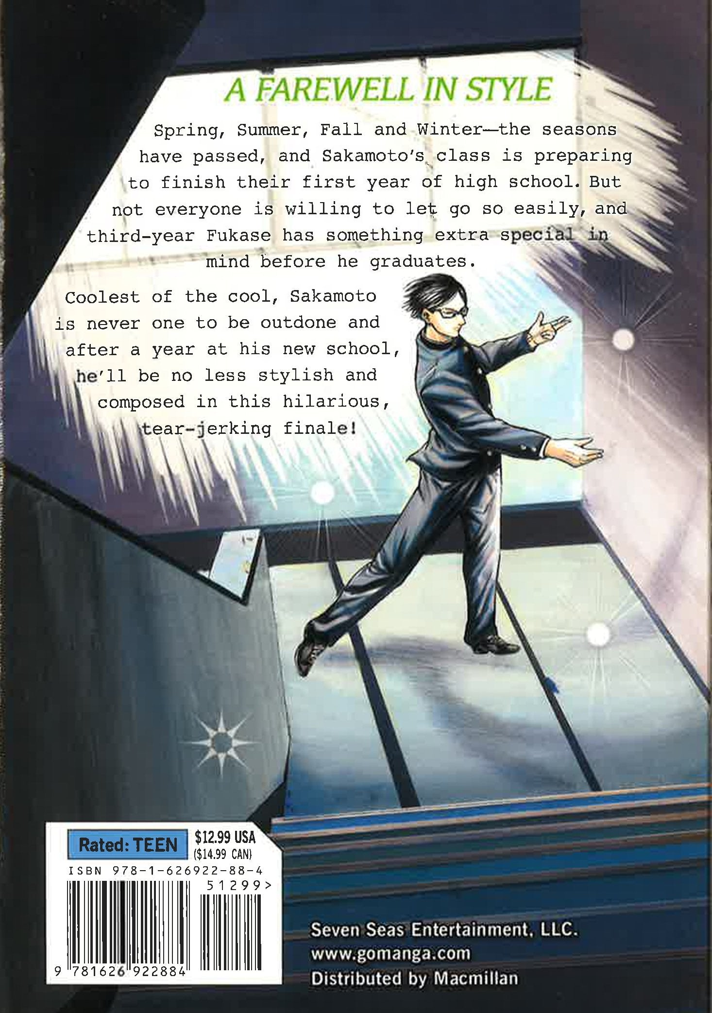 Spring, summer, fall and winter - the seasons have passed, and Sakamoto's class is preparing to finish their first year of high school. But not everyone is willing to let go so easily, and third-year Fukase has something extra special in mind before he graduates.Coolest of the cool, Sakamoto is never one to be outdone and after a year at his new school, he'll be no less stylish and composed in this hilarious, tear-jerking finale!