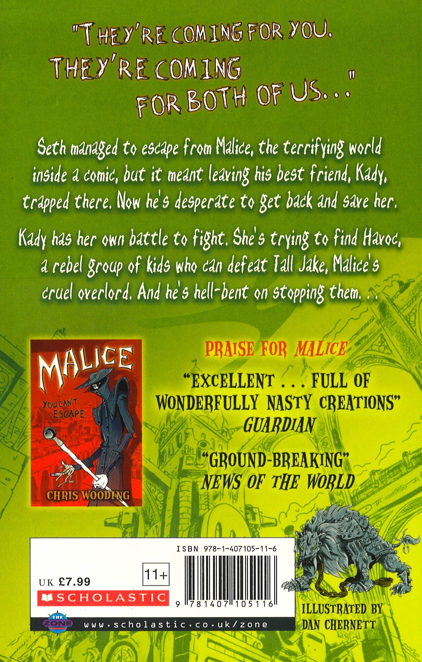 Seth finally managed to escape the terrifying comicbook world of Malice, but he left his best friend Kady there. Now he must go back and rescue her. But can he find a way back in? Kady has her own worries. She's trying to reach Havoc, a group of rebel kids plotting to destroy Tall Jake, the evil ruler of Malice. But somebody is watching the comic and can see what everyone is up to. Is there no way to escape?