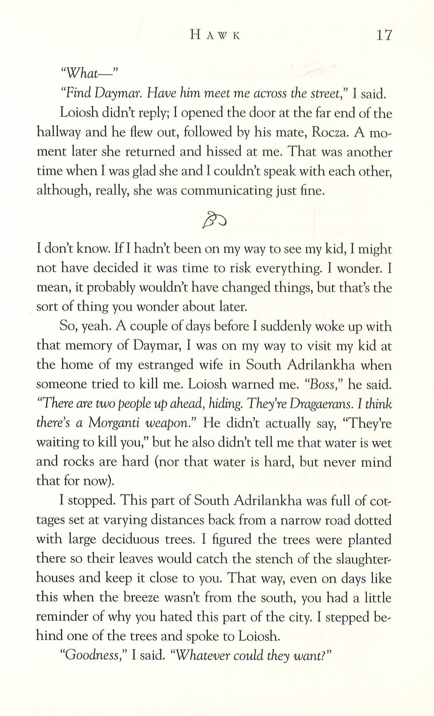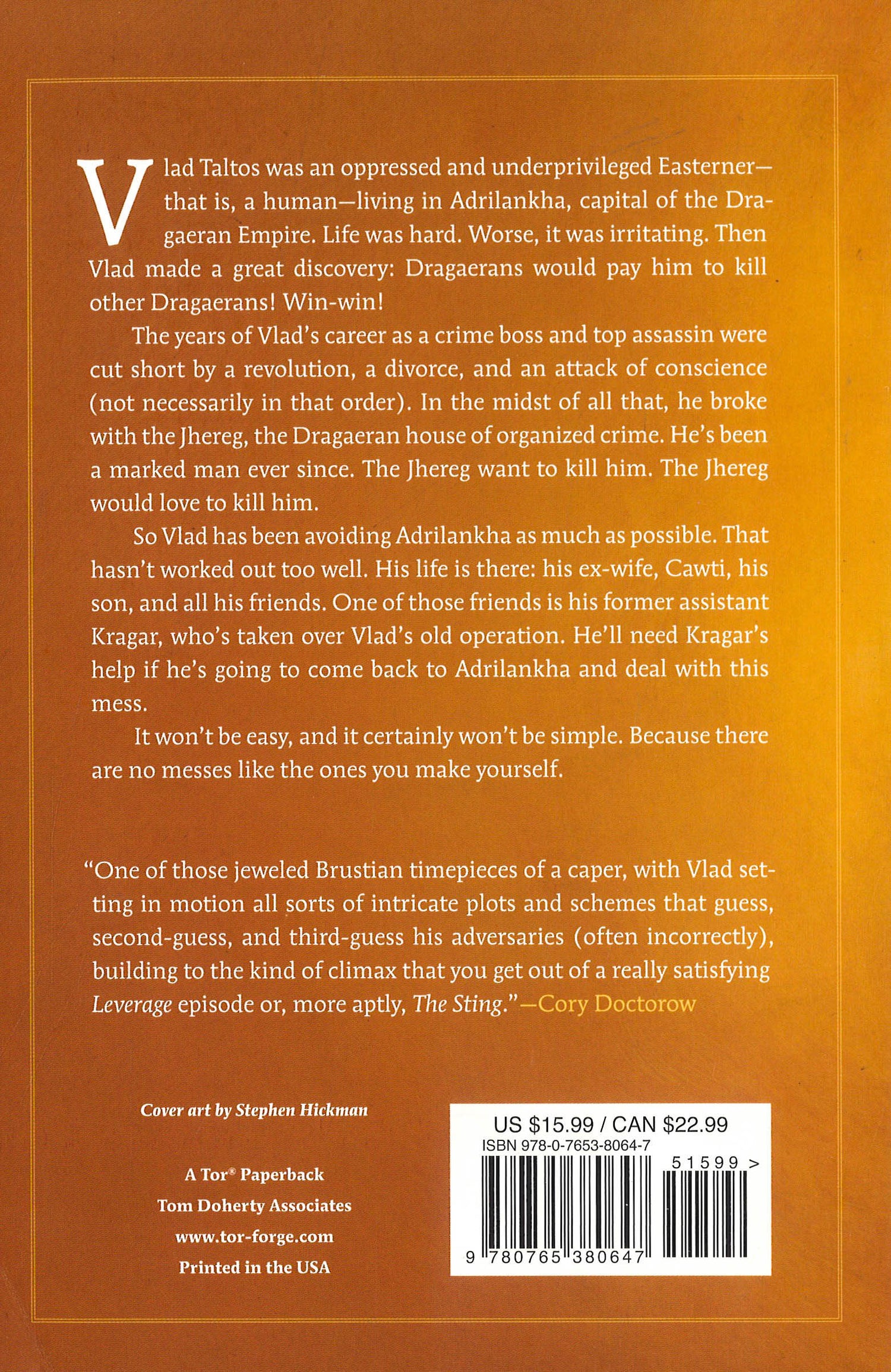 Years ago, Vlad Taltos came from the East to make his way as a human amidst the impossibly tall, fantastically long-lived natives of the Dragaeran Empire. He joined the Jhereg, one of the seventeen Dragaeran Houses that handles the Empire's vices: gambling, rackets, organized crime. He became a professional assassin. He was good at it.But that was then, before Vlad and the Jhereg became mortal enemies.For years, Vlad has run from one end of the Empire to the other, avoiding the Jhereg assassins who pursue him. Now, finally, he's back in the imperial capital where his family and friends are. He means to stay there this time. Whatever happens. And whatever it takes.