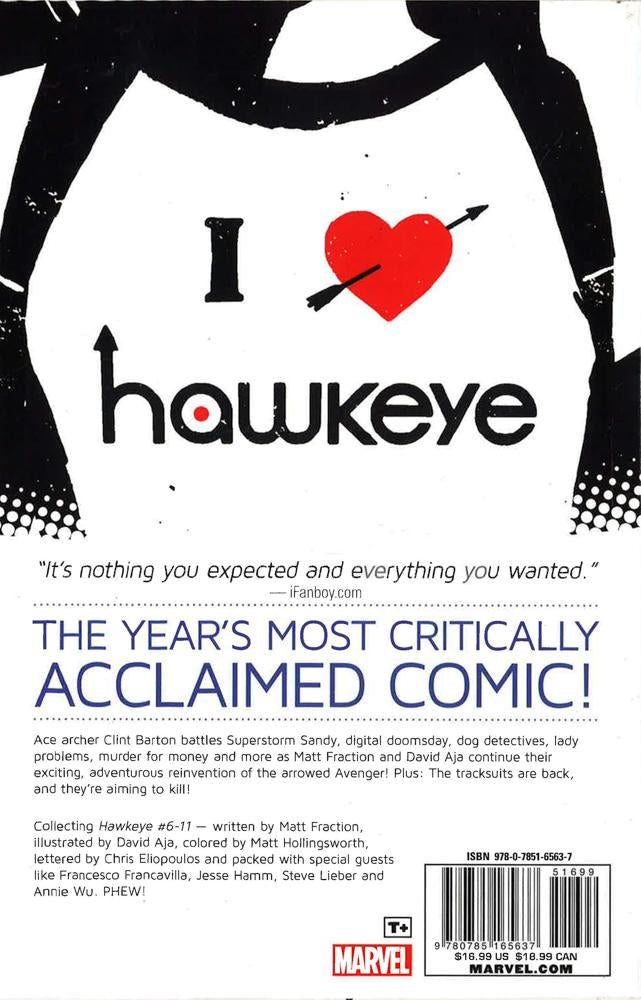 Artist David Aja returns to the most critically acclaimed comic of 2012, as ace archer Clint Barton faces the digital doomsday of - DVR-Mageddon! Cherry's got a gun. And she looks good in it. And Hawkeye gets very, very distracted. Valentine's Day with the heart-throb of the Marvel Universe? This will be. confusing. Marvel architect Matt Fraction continues his exciting, adventurous reinvention of the arrowed Avenger. COLLECTING: Hawkeye 6-11