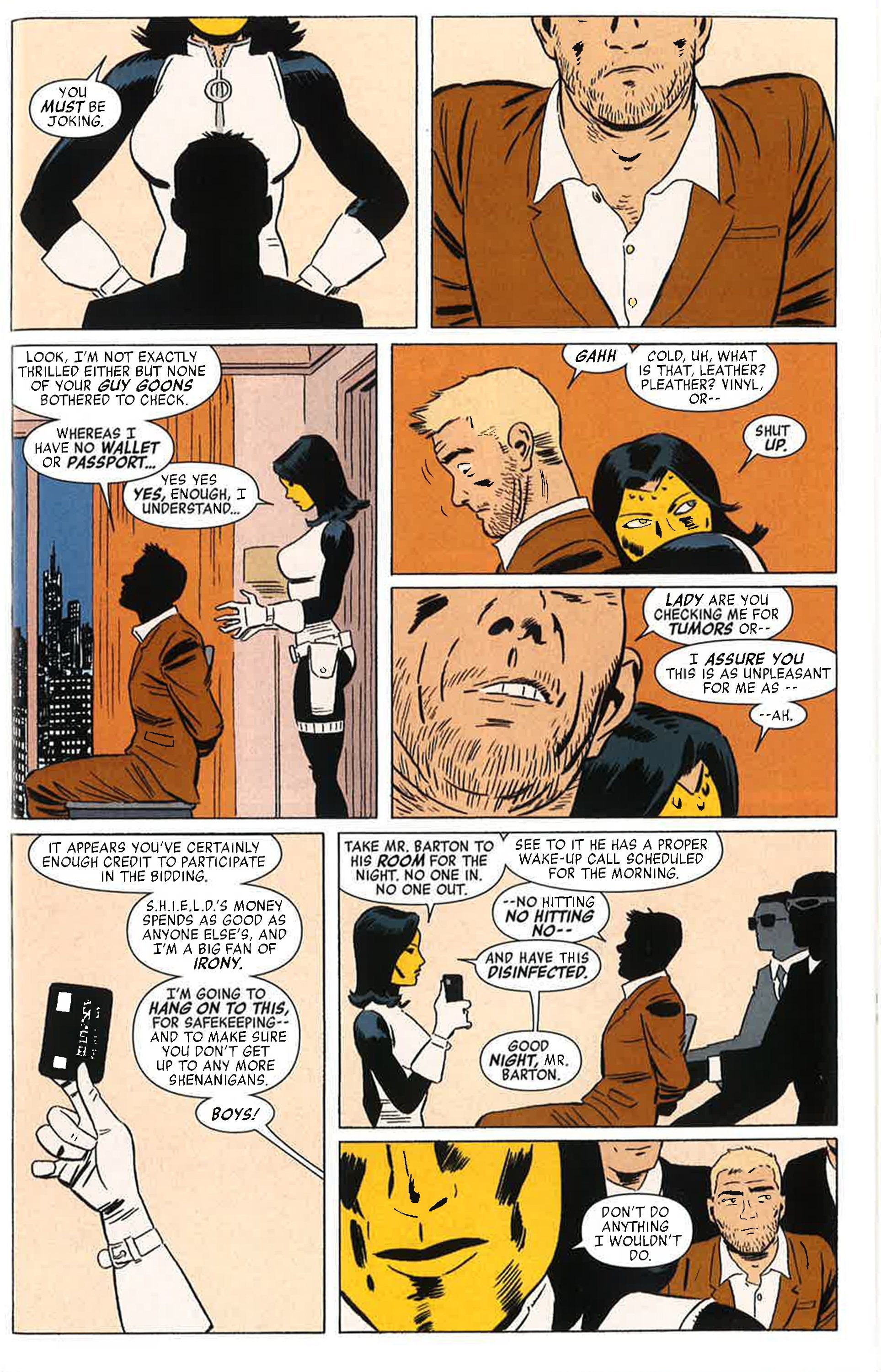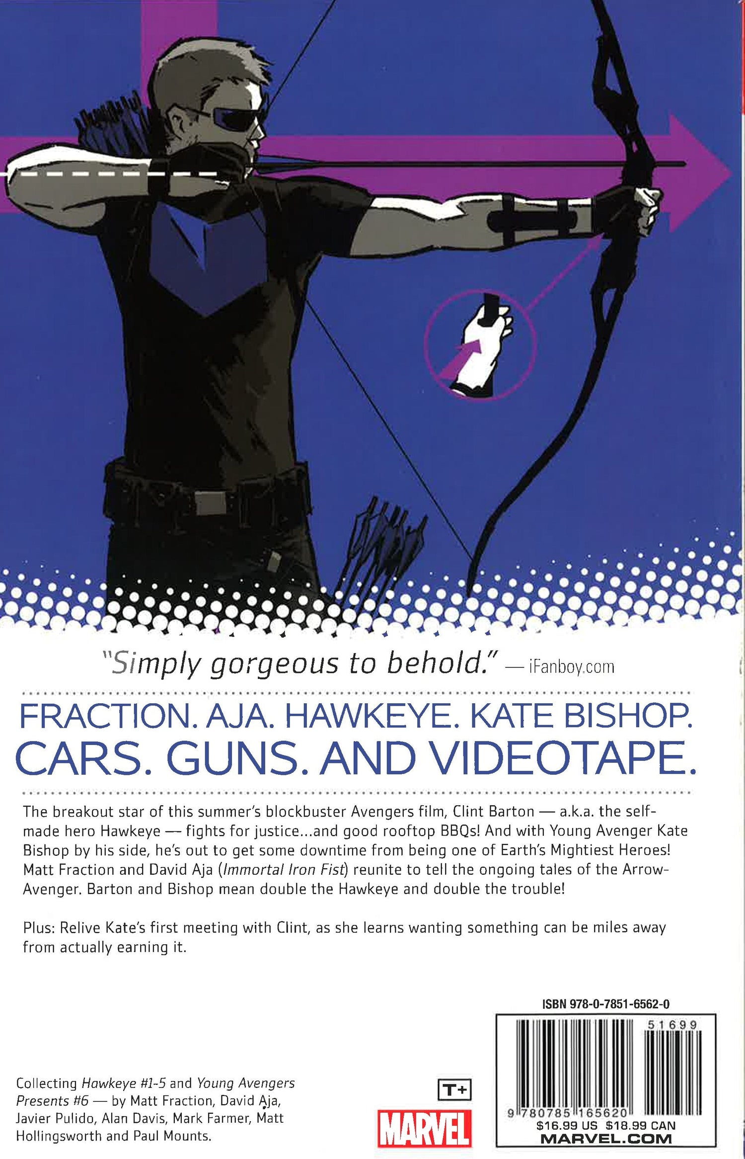 The breakout star of this summer's blockbuster Avengers film, Clint Barton - aka the self-made hero Hawkeye - fights for justice! With ex-Young Avenger Kate Bishop by his side, he's out to prove himself as one of Earth's Mightiest Heroes! SHIELD recruits Clint to intercept a packet of incriminating evidence - before he becomes the most wanted man in the world. You won't believe what is on The Tape! What is the Vagabond Code? Matt Fraction pens a Hawkeye thriller that spans the globe...and the darkest parts of Hawkeye's mind. Barton and Bishop mean double the Hawkeye and double the trouble...and stealing from the rich never looked so good. COLLECTING: Hawkeye 1-5, Young Avengers Presents 6