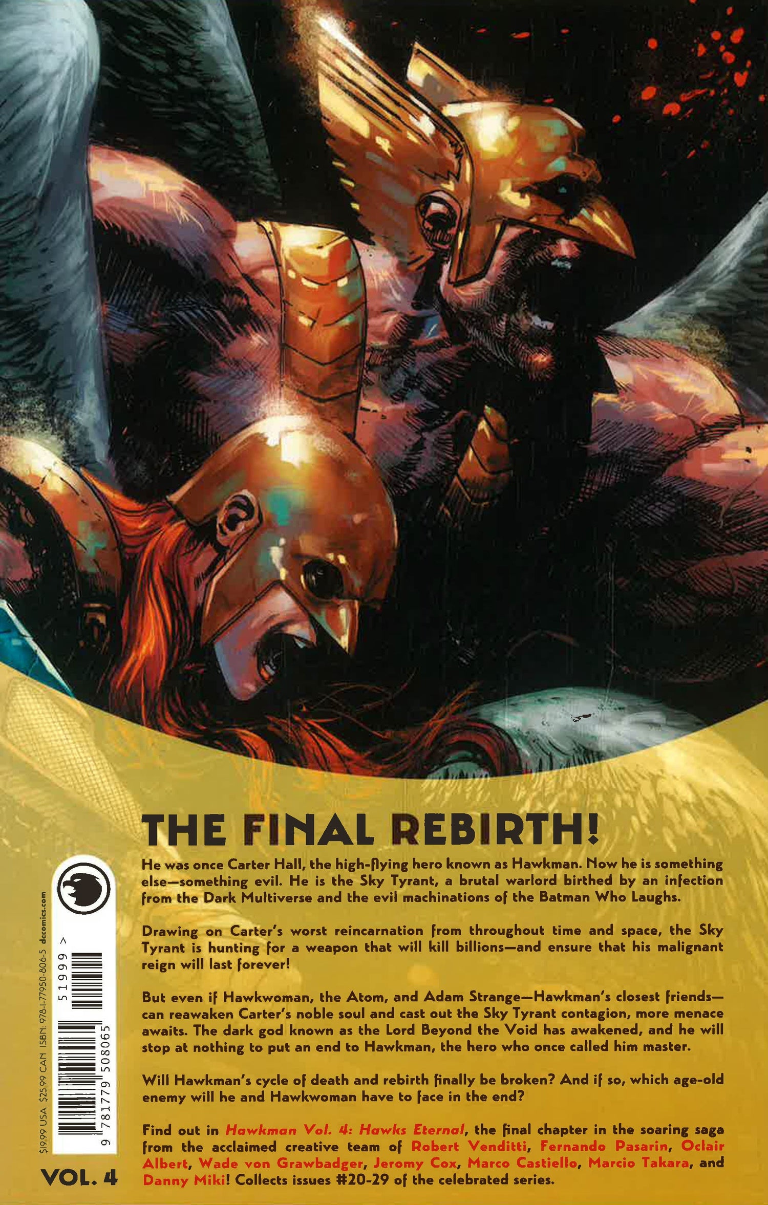Then, Hawkman and Hawkwoman reunite, but the romantic moment is interrupted when they're sucked into the realm of the Lord Beyond the Void! Hawkman is forced to confront the misery he wrought in his first life as Ktar Deathbringer--who seeks to end the winged hero's resurrections, permanently! Can Hawkman and Hawkwoman survive--and save the universe in the process?