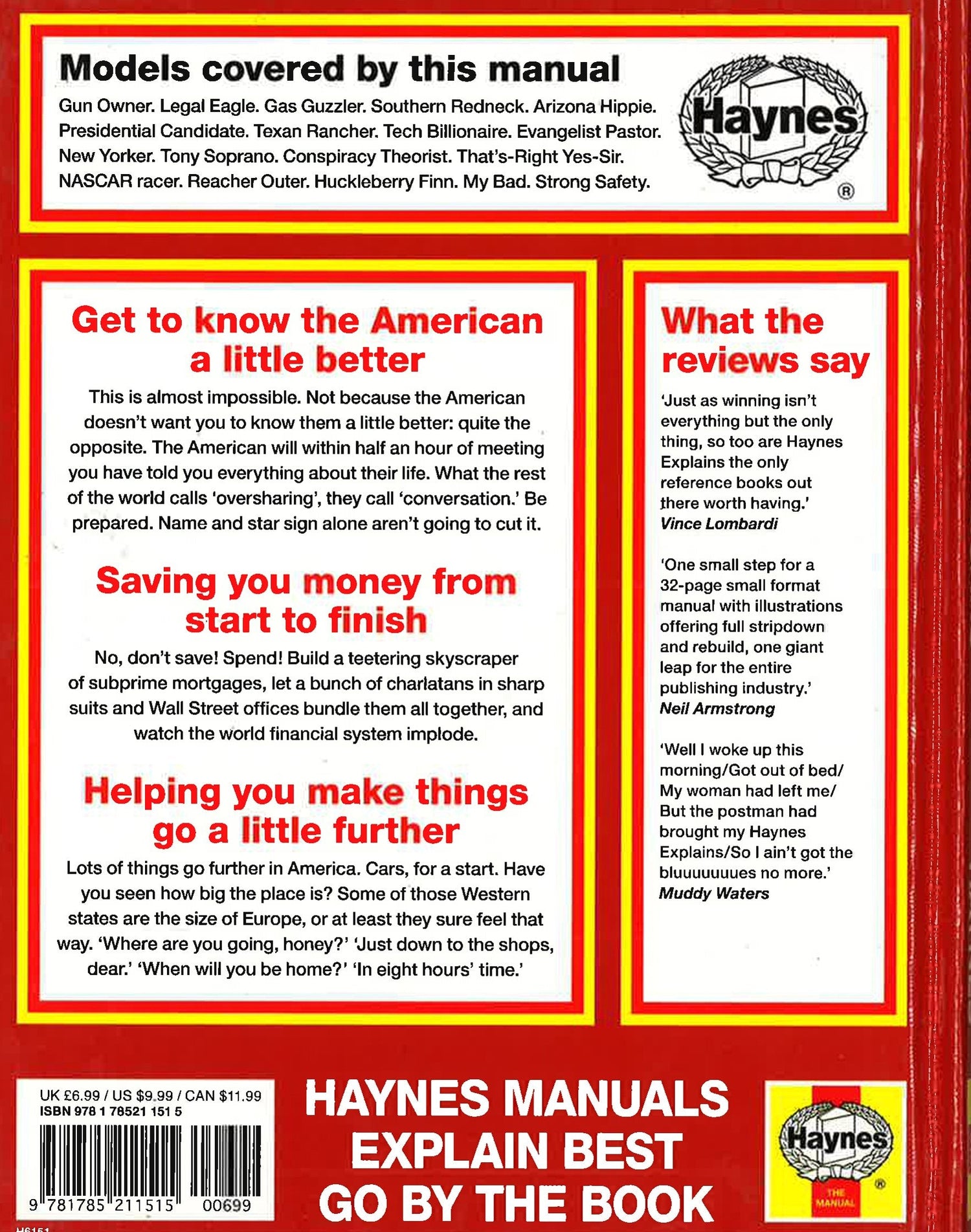 Written by bestselling author Boris Starling, The Americans is one of the new titles for 2017 in the Haynes Explains series. A light-hearted and entertaining take on the classic workshop manual, it contains everything you'd expect to see including exploded views, flow charts, fault diagnosis and the odd wiring diagram. It takes the reader through all areas of American life, giving the reader all the hints and tips needed to make cross-Atlantic relationships run smoothly.