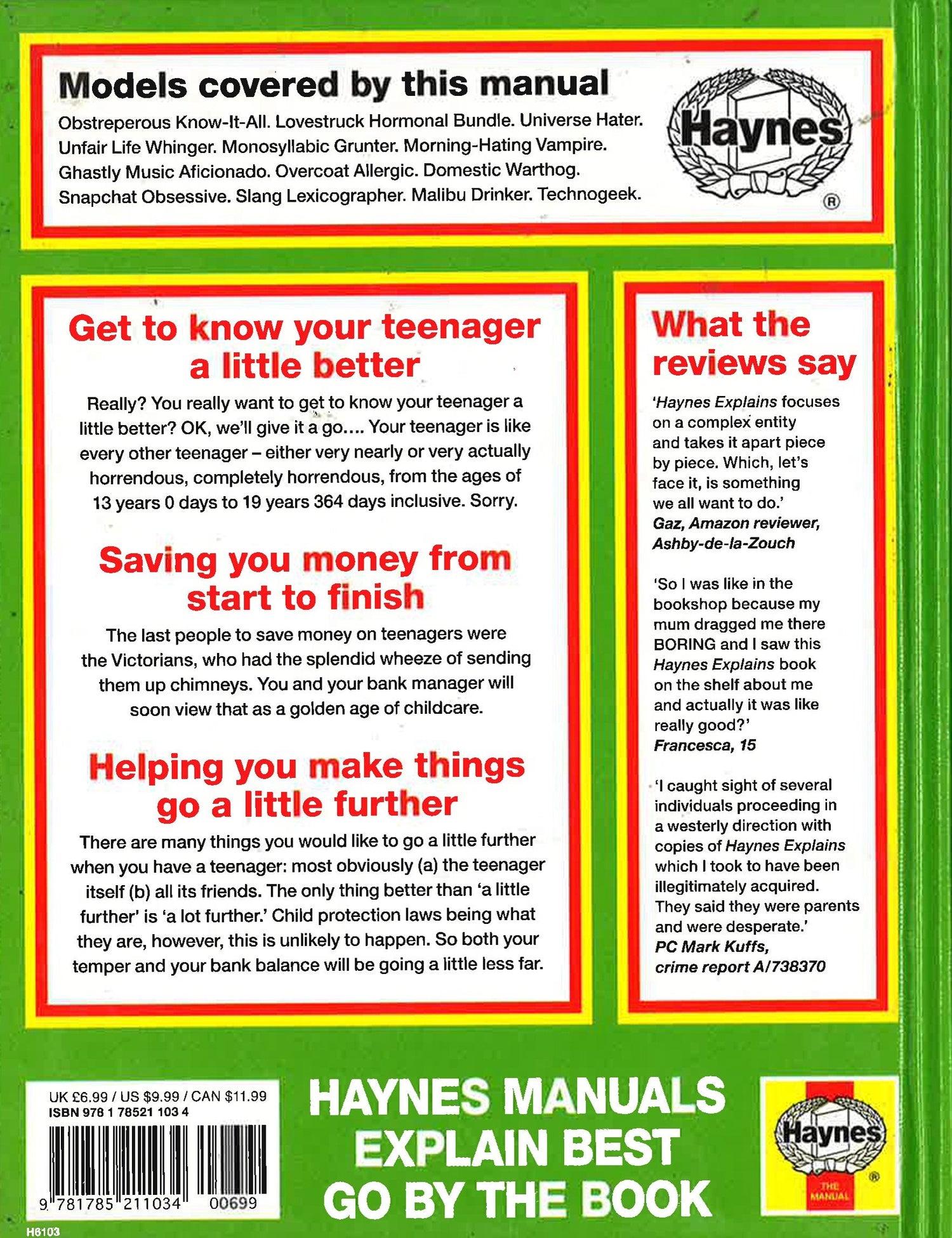 Written by bestselling author Boris Starling, Teenagers is one of the first titles in the brand new Haynes Explains series. A light-hearted and entertaining take on the classic workshop manual, it contains everything you'd expect to see including exploded views, flow charts, fault diagnosis and the odd wiring diagram. It takes the reader through all stages of teenage life, giving them all the hints and tips needed to keep them running smoothly.