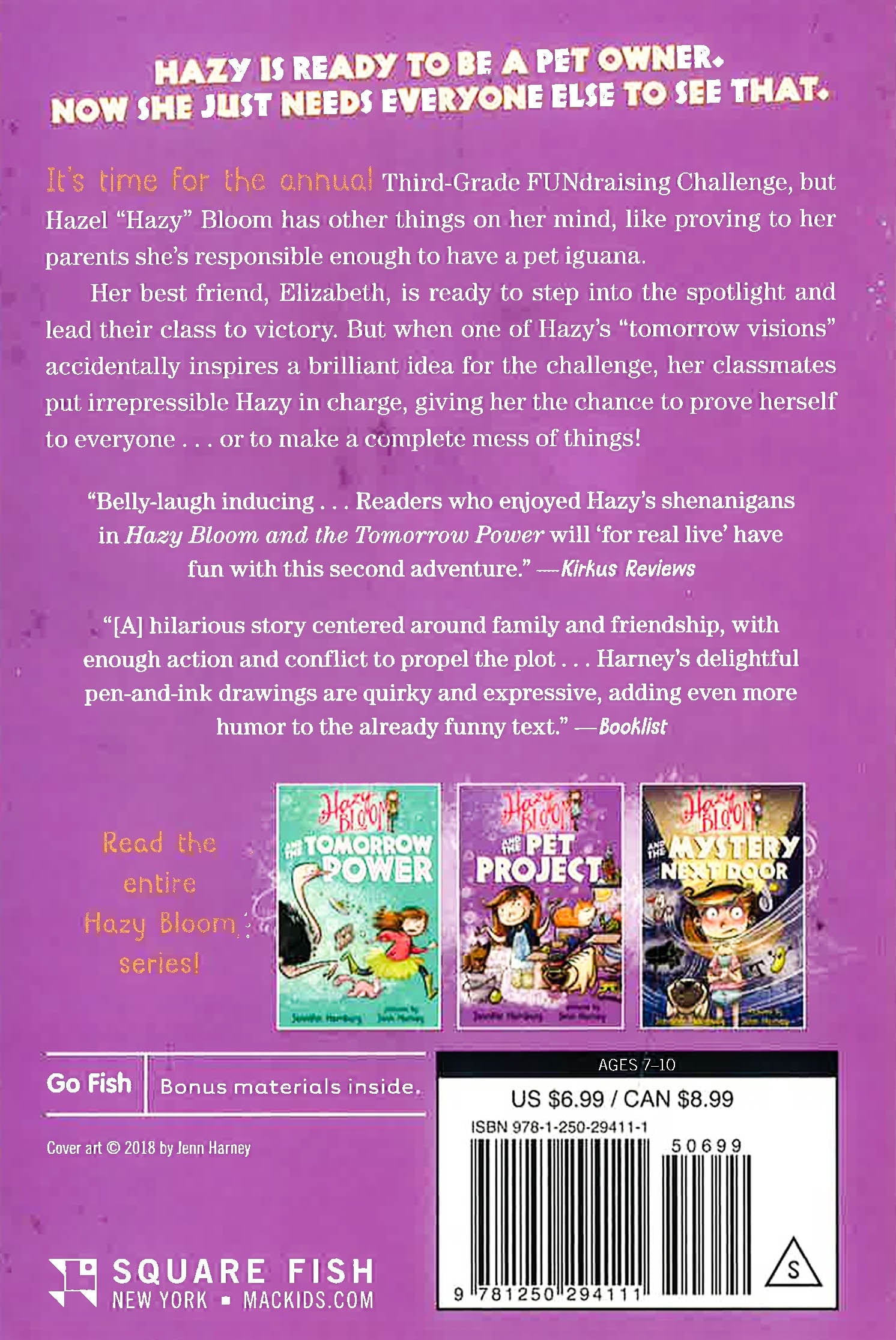 After wacky third grader Hazy Bloom starts seeing visions of things that will happen one day in the future, she hopes her tomorrow power will help her get the pet she's always dreamed of in Hazy Bloom and the Pet Project, a hilarious chapter book by Jennifer Hamburg with illustrations by Jenn Harney. It's the annual Third Grade Leadership Challenge, where each third-grade class plans and hosts a fundraiser. Hazel Hazy Bloom, however, has other things on her mind--like proving to her parents she's responsible enough to get a pet iguana. But when Hazy's tomorrow power--her ability to see visual clues about things that will happen one day in the future--mistakenly causes her to have a brilliant idea for a Pet Day fundraiser, her classmates put her in charge. Hazy's annoyed, until she realizes that if she helps the class win, her parents will finally see that she's responsible enough to get the iguana she's dreaming of. Soon, Hazy's determined to make sure her team ends up on top--but it's not so easy when her tomorrow visions keep throwing her plans into disarray!
