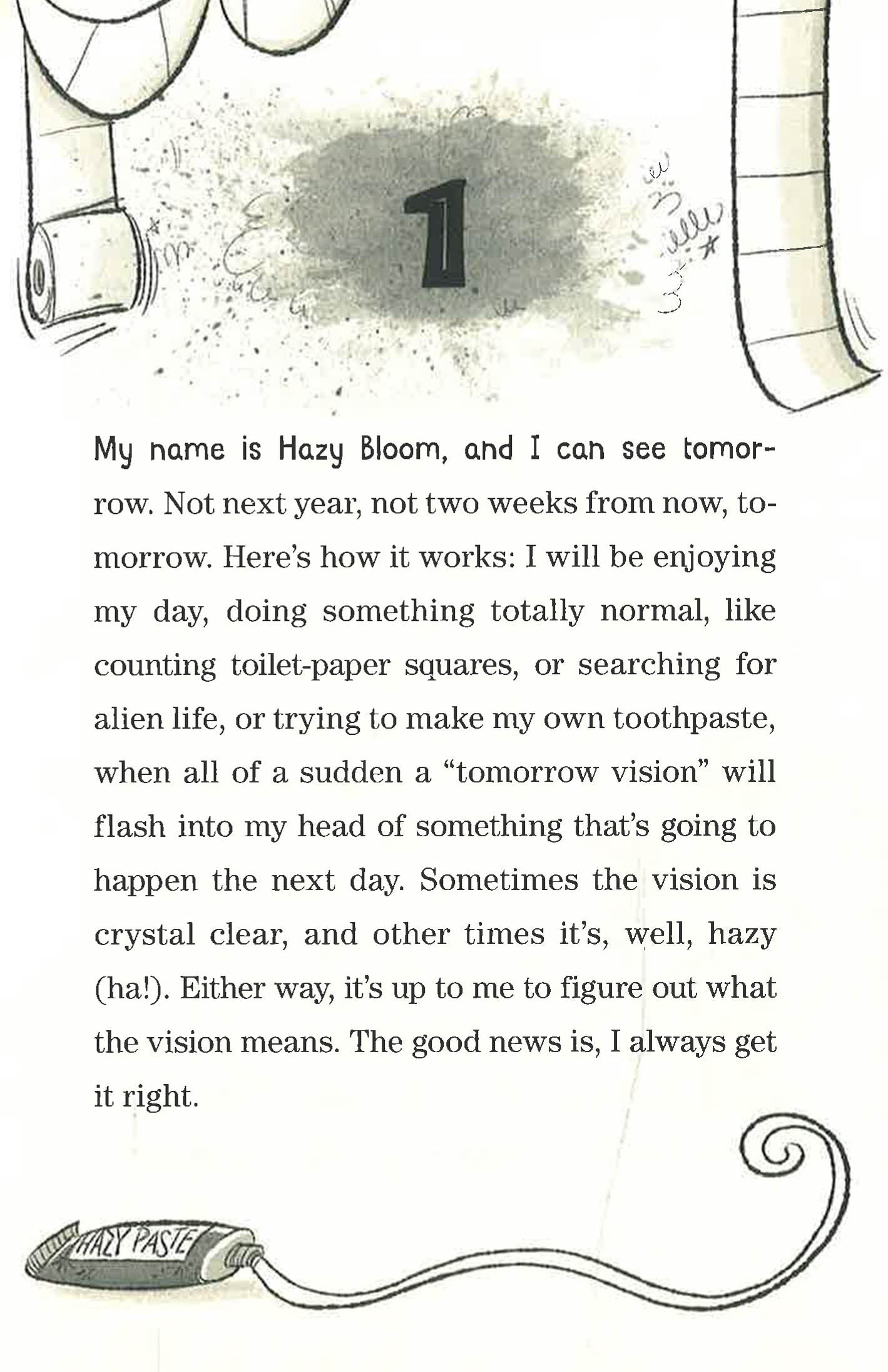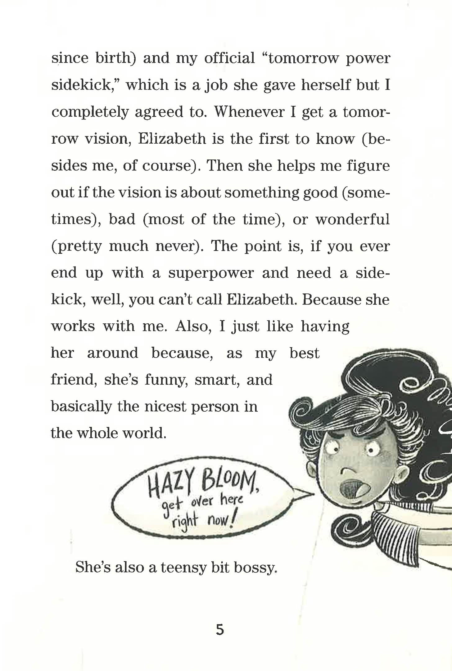 It's the annual Third Grade Leadership Challenge, where each third-grade class plans and hosts a fundraiser. Hazel "Hazy" Bloom, however, is busy proving to her parents she's responsible enough to get a pet iguana. But when Hazy's "tomorrow power" mistakenly causes her to have a brilliant idea for a Pet Day fundraiser, her classmates put her in charge. Hazy's annoyed, until she realizes that if she helps the class win, her parents will finally see that she's responsible enough to get the iguana she's dreaming of. Soon, Hazy's doing everything she can to make sure her class wins-but it's not so easy when her tomorrow visions keep throwing her plans into disarray!