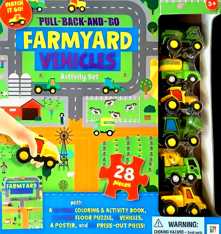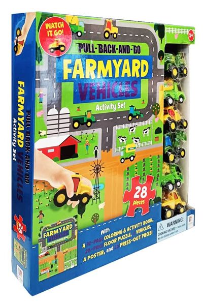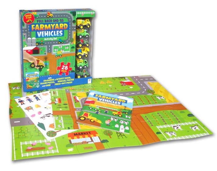 There’s hours of fun to be had with the Pull-back-and-go Farm Vehicles Activity Set! First, piece the farm jigsaw together to create a big 42 x 61 cm (16.5 x 24 in) play mat. Then, get out your 6 cars, set them up on the mat, pull them back and watch them go! You can also add to your world with over 25 press-out characters, animals and farm equipment that you can place around the property. When you’re done, grab the 32-page colouring and activity book and complete the fun farm-themed activities while you read along with the story!