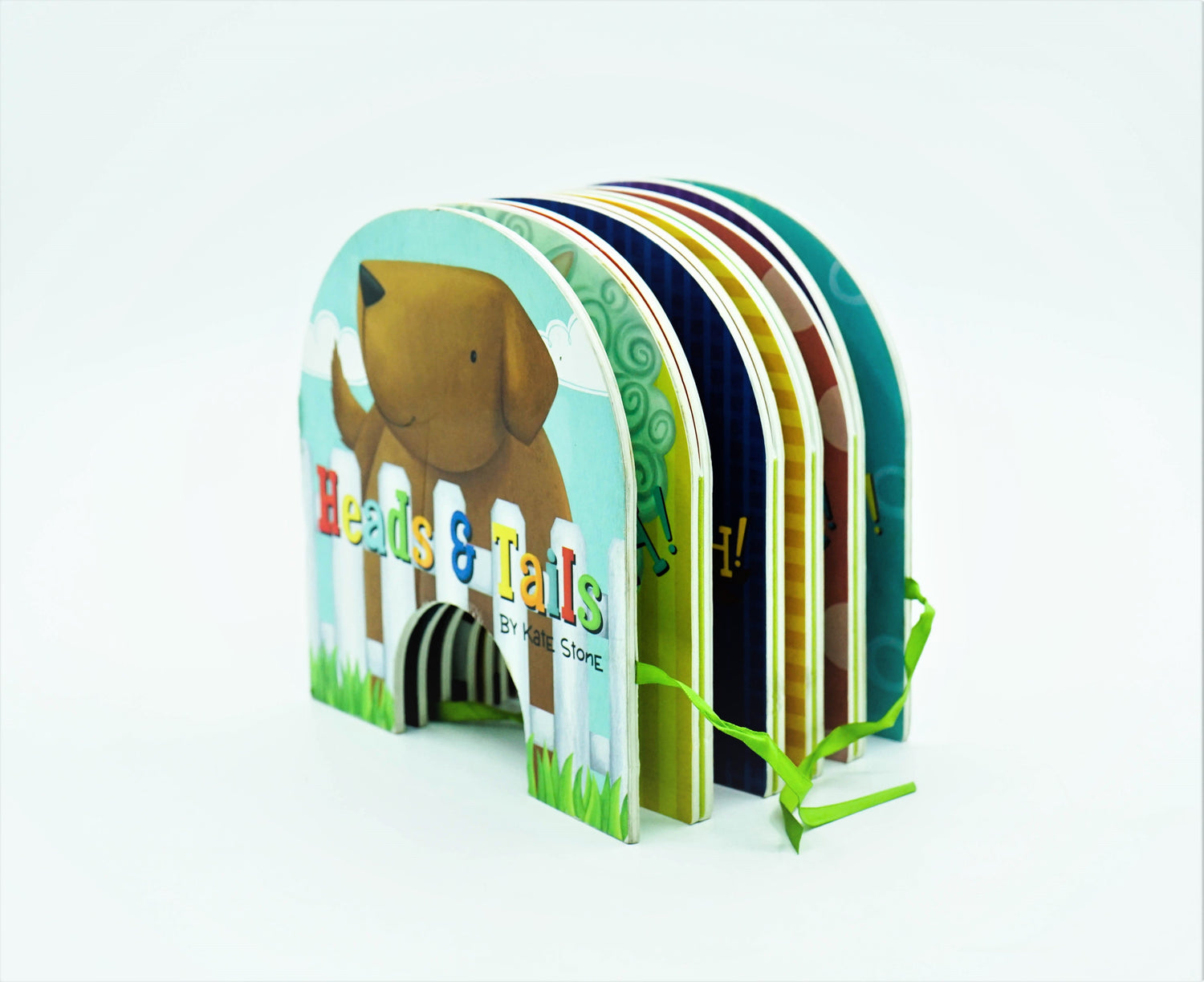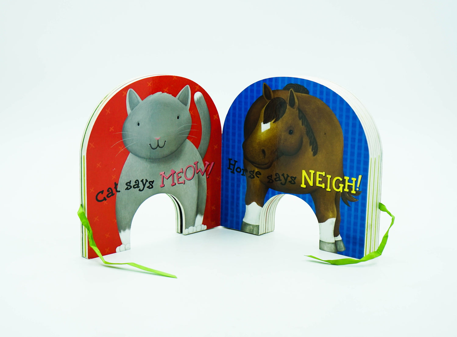 Unfold this cute, accordion-style board book to see a line-up of sweetly illustrated and easily recognizable critters. Just slide off the attached elastic band to unfold a yard-long line up of friendly faces. Each one is accompanied its sound in big, bold text that's perfect for preschoolers. Flip the whole thing over to find a back side features everyone's respective tails. All in all, it's the perfect way for little ones to learn about familiar critters and the sounds they make.