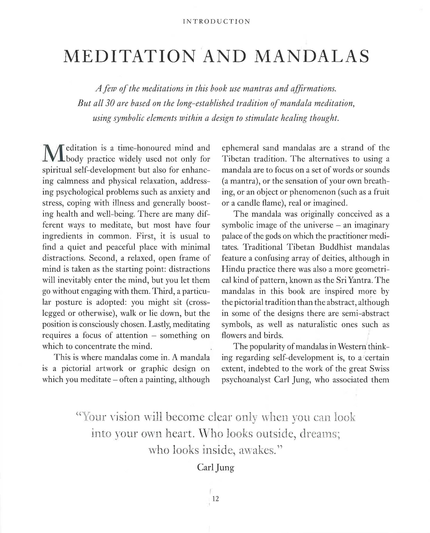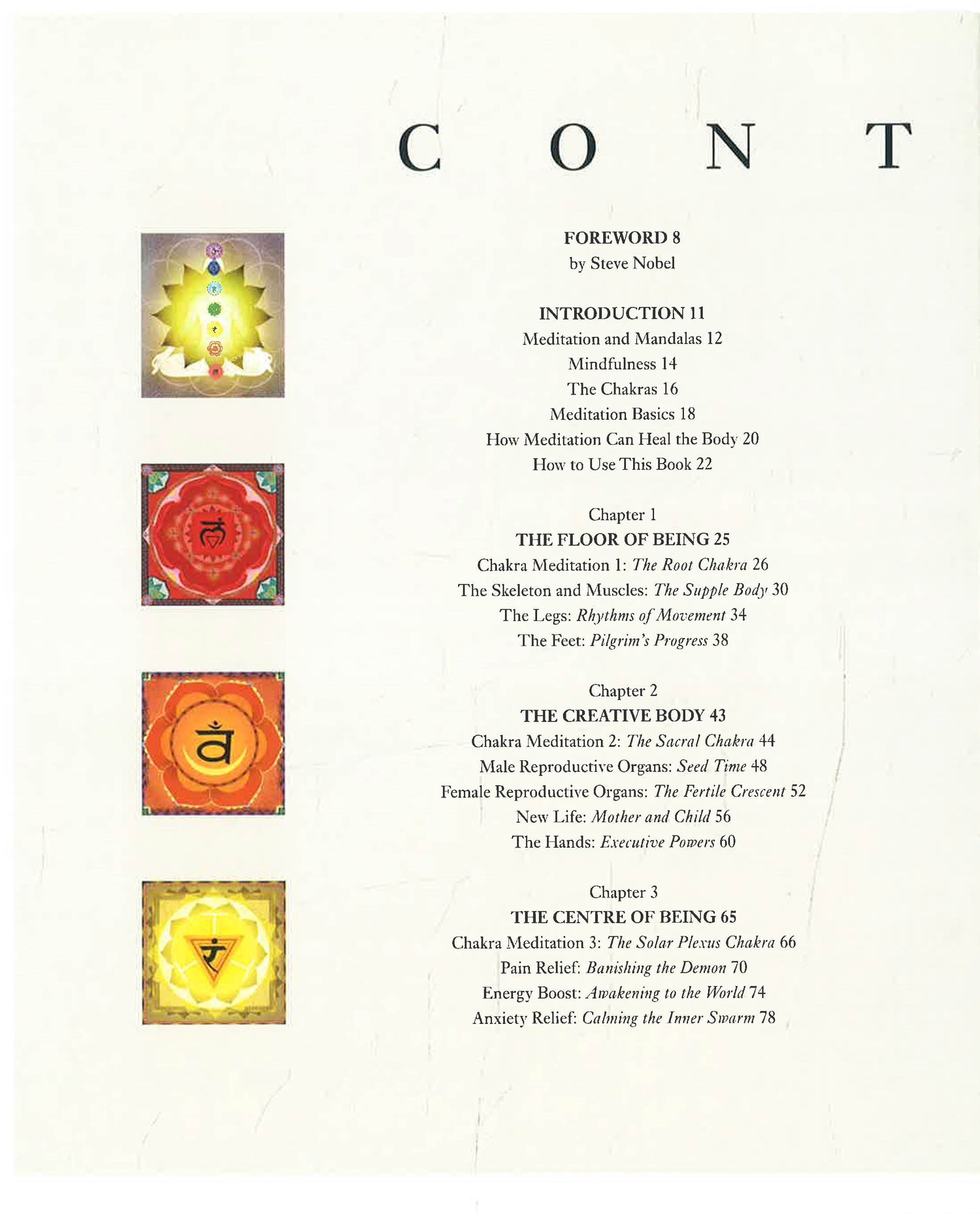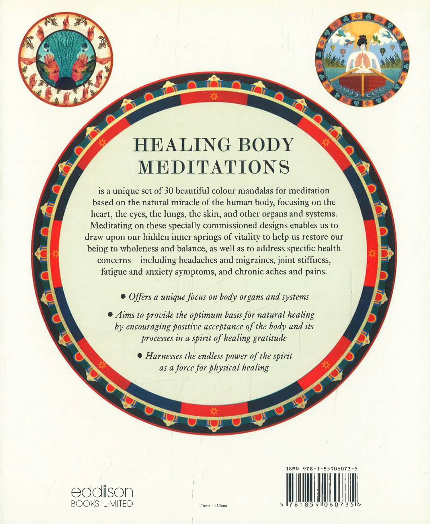 HEALING BODY MEDITATIONS is a unique set of 30 beautiful colour mandalas for meditation, based on the natural miracle of the human body, focusing on the heart, the eyes, the lungs, the skin, and other organs and systems. Meditating on these specially commissioned designs enables us to draw upon our hidden inner springs of vitality, to help us restore our being to wholeness and balance, as well as to address specific health concerns - including headaches and migraines, joint stiffness, fatigue and anxiety symptoms, and chronic aches and pains.