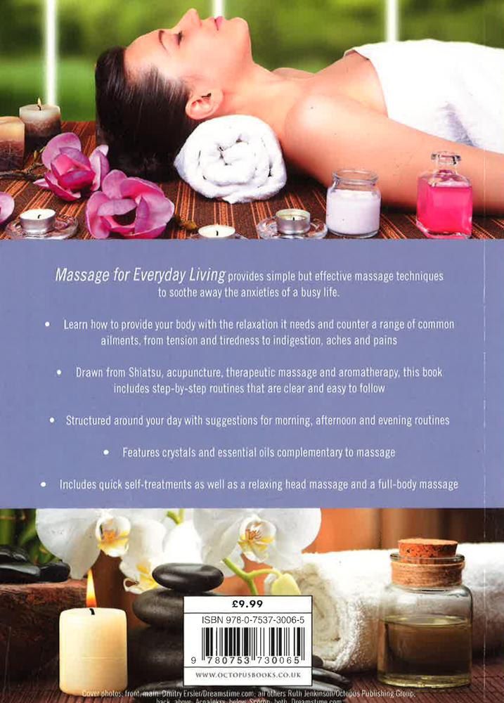 Massage for Everyday Living provides simple but effectvive massage techniques to ease away the stress and anxiety of a busy life in the rush of the modern world. Drawn from Shiatsu, head massage, acupressure, therapeutic massage and aromatherapy, there are step-by-step routines to treat a range of common ailments, from tension and indigestion to aches and pains. There are suggestions for morning, evening and day time routines and advice on how best to incorporate massage into your life. Also featured are crystals and essential oils which go perfectly with each massage to allow you the full body experience.
