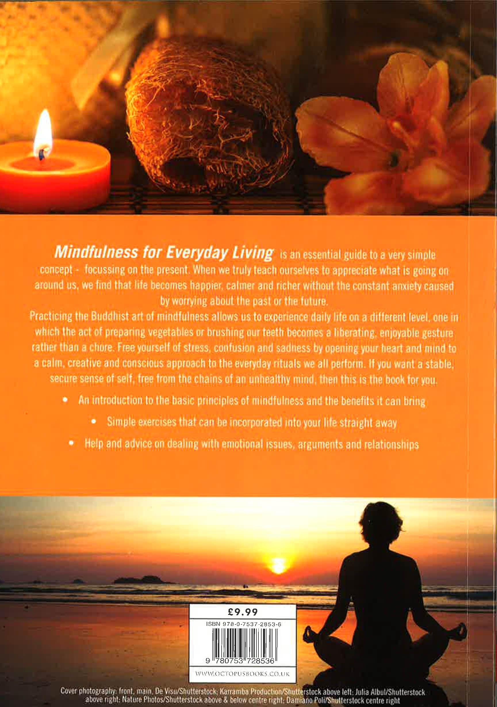 This book explains the principles of Mindfulness, a meditation cognitive therapy, and shows how its rituals can help you find a path to better living.Living in the moment can be harder than we think in a tech-filled world of to-do lists. This gentle guide shows you easy, enjoyable and effective ways to slow down and develop awareness of your thoughts, actions and the environment.Exercises include step-by-step breathing and sound meditations, eating, walking meditations and movement sequences inspired by chi gong, tai chi and yoga to bring the mind and body into the present moment.In this fully-illustrated book discover the meditations and body moves to combat stress and anxiety, deal with fear and procrastination, eat better, manage change, love more, and ultimately feel the joy of being 'in the now'.