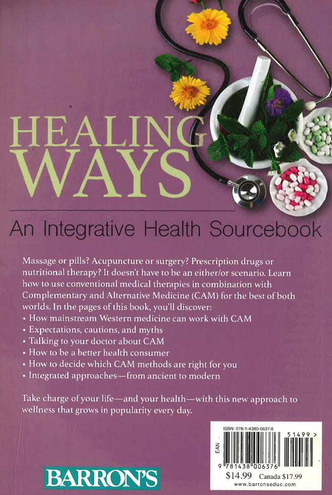 In Healing Ways: An Integrative Health Sourcebook, you'll find important information about conventional and alternative therapies, and how they can work together to help you reap maximum benefits. This approach is called Complementary and Alternative Medicine (CAM), and it lets you combine the best of both worlds: mainstream medical therapies and alternative solutions that have high-quality scientific evidence for safety and effectiveness.