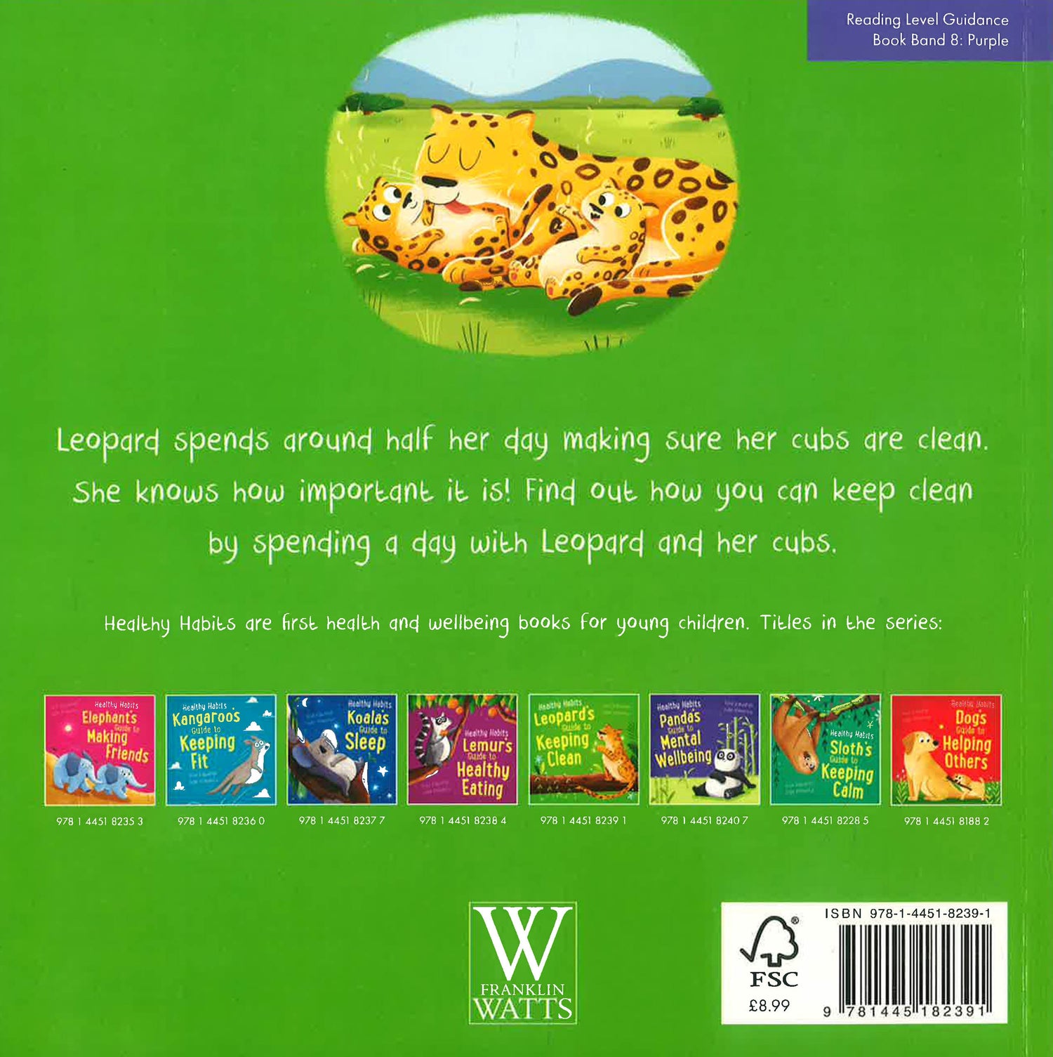 Leopard spends around half the time she is awake making sure her cubs are clean. This book follows the story of leopard and her cubs and how they keep clean, but it provides lots of advice on keeping clean for its human readers. Topics include when and how to wash hands, and keeping hair and teeth clean.