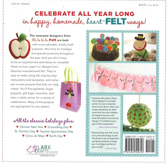 Celebrate - and craft - from the heart! The same team that brought you the top-selling "Fa la la la Felt" now offers another adorable book of fresh, easy-to-make felt decorations - this time with festive and fun holiday themes for the rest of the year. Using readily available store-bought felt sheets, crafters can have year-round enjoyment creating 40 charming projects for Valentine's Day, Easter, Halloween, Mother's Day, Thanksgiving, Christmas and more.