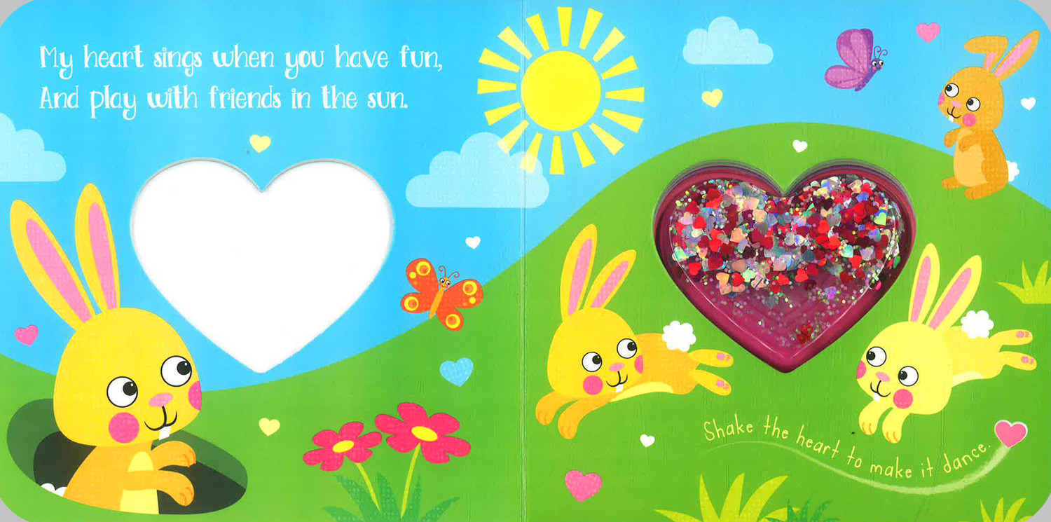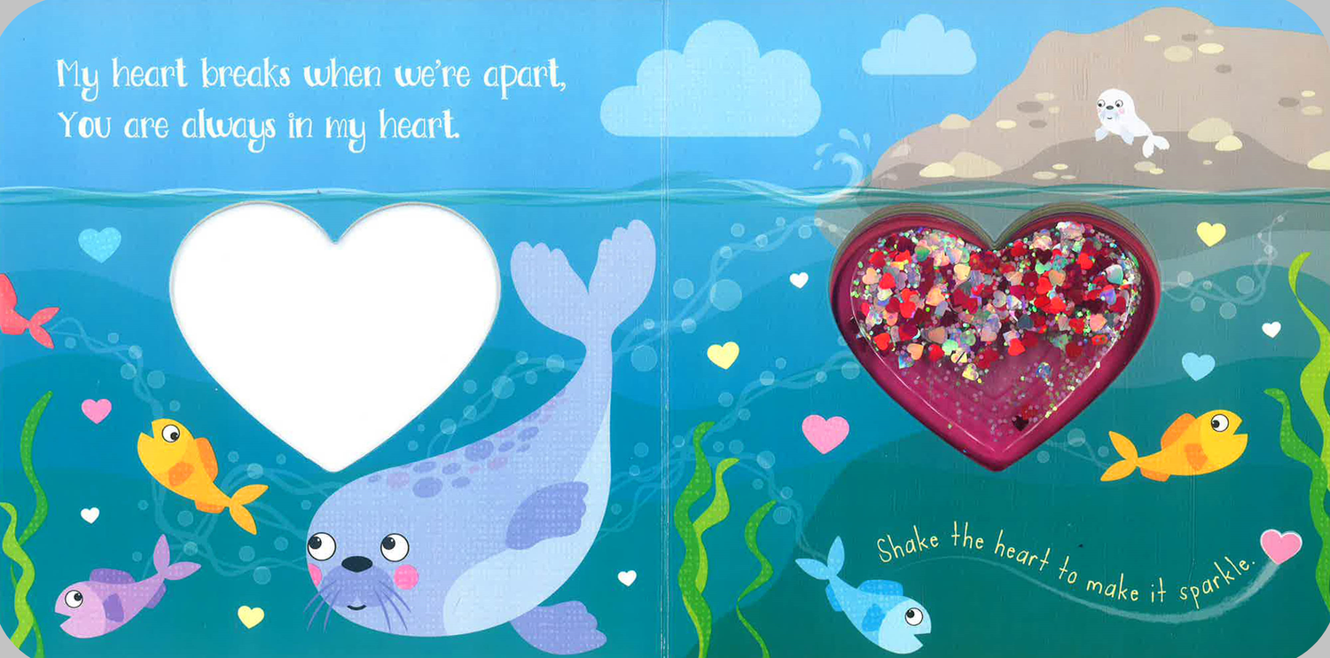 A heartfelt, rhyming story book that is perfect for reading at bedtime, with a glittery heart to shake, shimmer and sparkle. Shake the book to create a colourful cascade of glitter and foil shapes inside the heart, which is secured to the inside of the book so you can make the heart shake, shimmer and sparkle on each page.