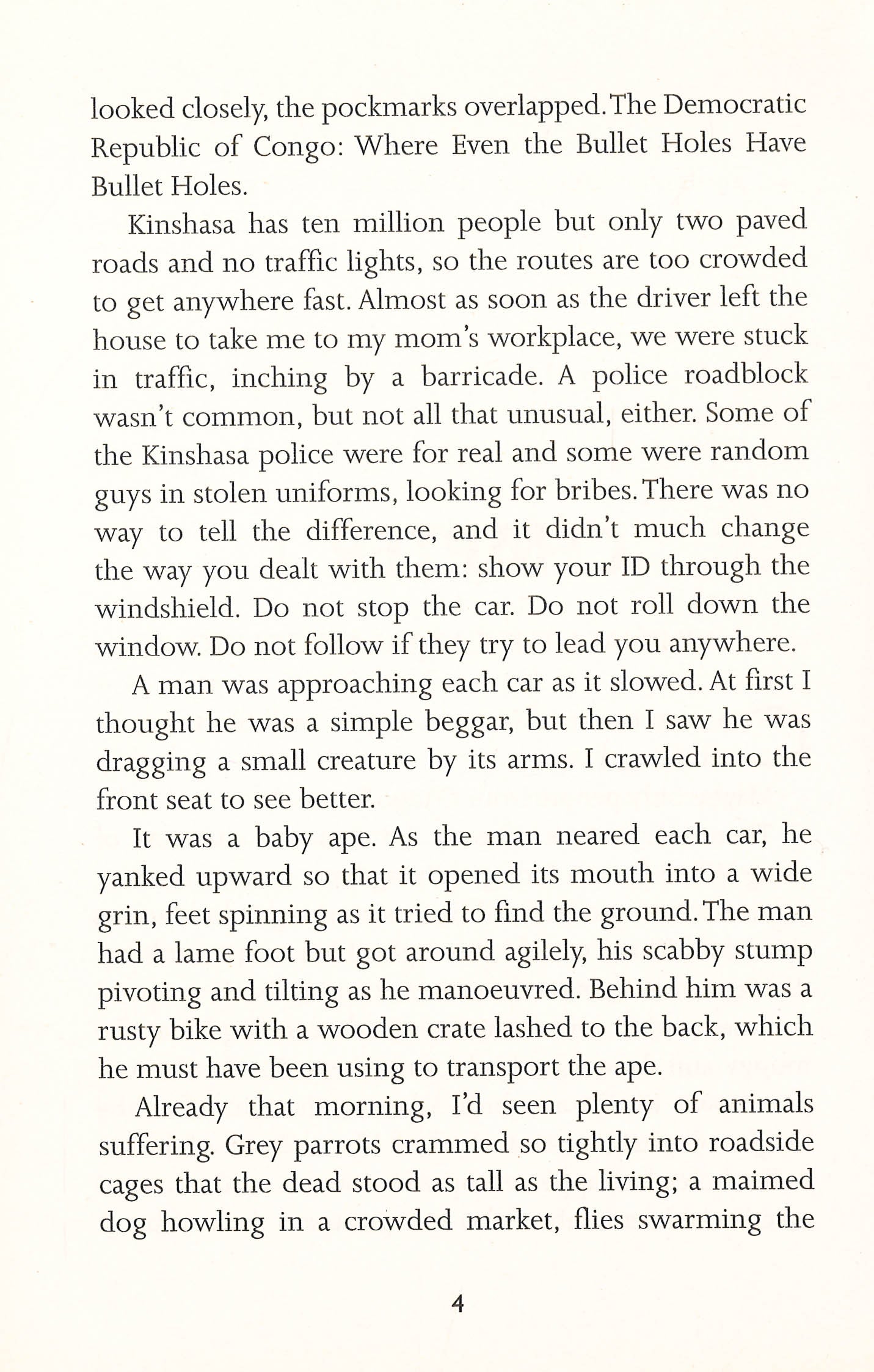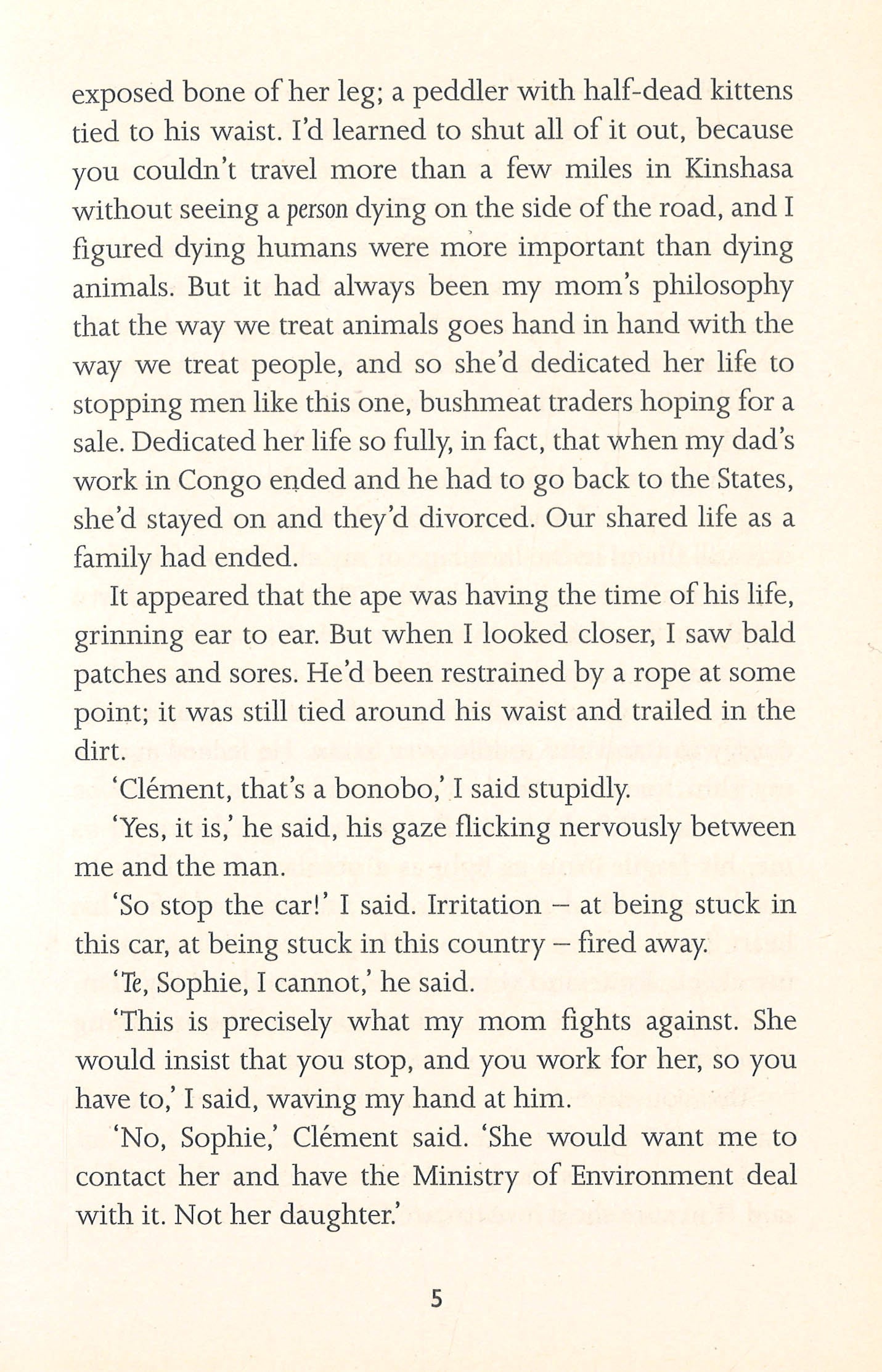 When Sophie rescues Otto, a baby bonobo clinging to life, her world changes for ever. Until then, she had never understood her mother's decision to create an animal sanctuary in one of the most dangerous place on earth: the African Congo. But one night, while her mother's away, rebel soldiers attack.