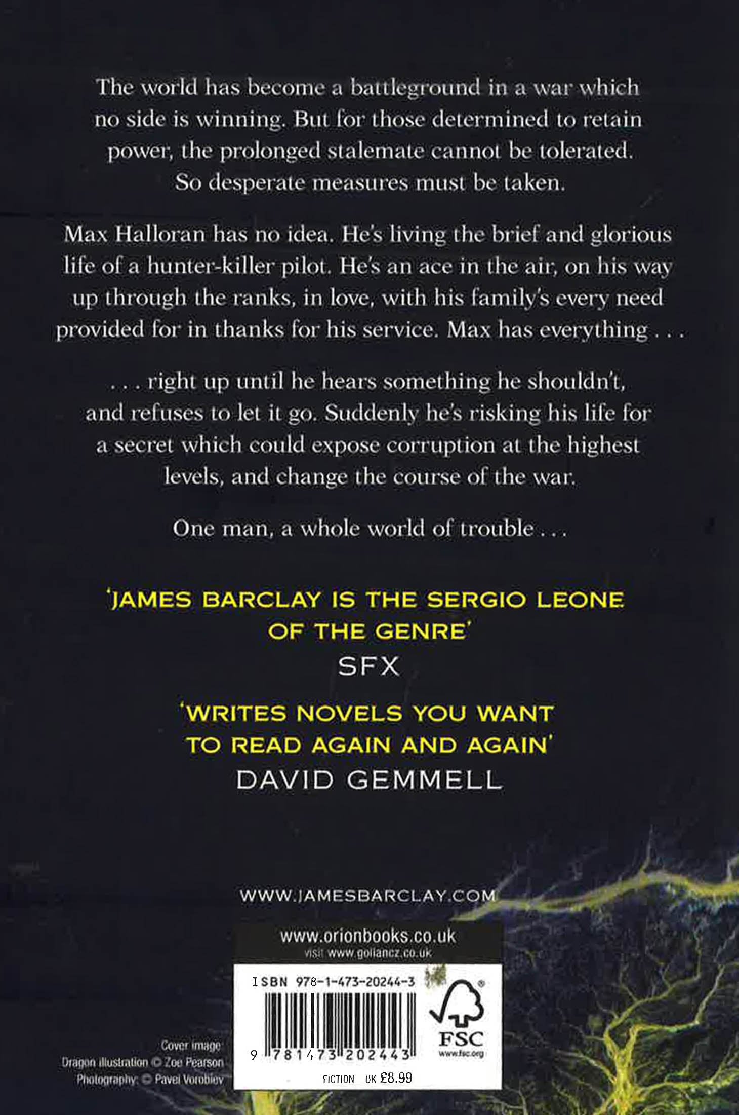 The world has become a battleground in a war which no side is winning. But for those determined to retain power, the prolonged stalemate cannot be tolerated so desperate measures must be taken. Max Halloran has no idea. He's living the brief and glorious life of a hunter-killer pilot. He's an ace in the air, on his way up through the ranks, in love, and with his family's every need provided for in thanks for his service, Max has everything . . . . . . right up until he hears something he shouldn't have, and refuses to let it go. Suddenly he's risking his life and the lives of all those he cares about for a secret which could expose corruption at the highest levels, and change the course of the war. One man, one brief conversation . . . a whole world of trouble . . .