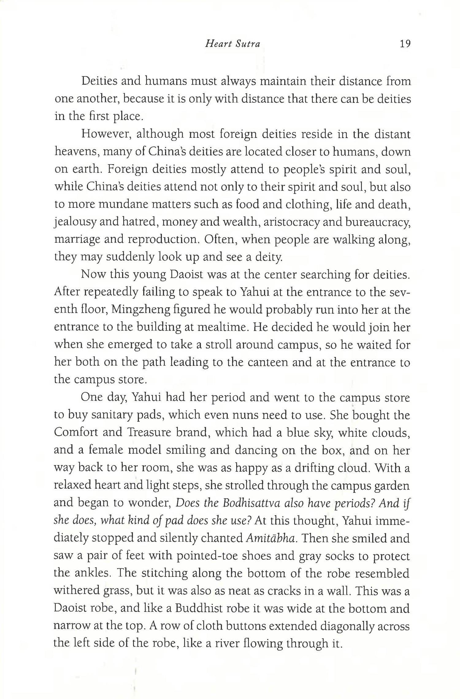 From "China's foremost literary satirist" (Financial Times) comes a captivating new novel set at a religious training center in Beijing, focusing on the unlikely love story of a Buddhist nun and a Daoist priestAt the Religious Training Center on the campus of Beijing's National Politics University, disciples of China's five main religions--Buddhism, Daoism, Protestantism, Catholicism, and Islam--gather for a year of intensive study and training. In this hallowed yet jovial atmosphere, the institute's two youngest disciples--Yahui, a Buddhist jade nun, and Gu Mingzheng, a Daoist master--fall into a fast friendship that might bloom into something more.This year, however, the worldly Director Gong has an exciting new plan: he has organized tug-of-war competitions between the religions. The fervor of competition offers excitement for the disciples, as well as a lucrative source of fundraising, but Yahui looks on the games with distrust: her beloved mentor collapsed after witnessing one of these competitions. Gu Mingzheng, meanwhile, has his own mission at the institute, centering on his search for his unknown father. Soon it becomes clear that corruption is seeping ever more deeply into the foundation of the institute under Director Gong's watch, and Yahui and Gu Mingzheng will be forced to ask themselves whether it is better to stay committed to an increasingly fraught faith or to return to secular life forever--and nothing less than the fate of the gods itself is at stake.Illustrated throughout with beautiful original papercuts, animated by Yan Lianke's characteristically incisive sense of humor, Heart Sutra is a stunning and timely novel that highlights the best and worst in mankind and interrogates the costs of division.