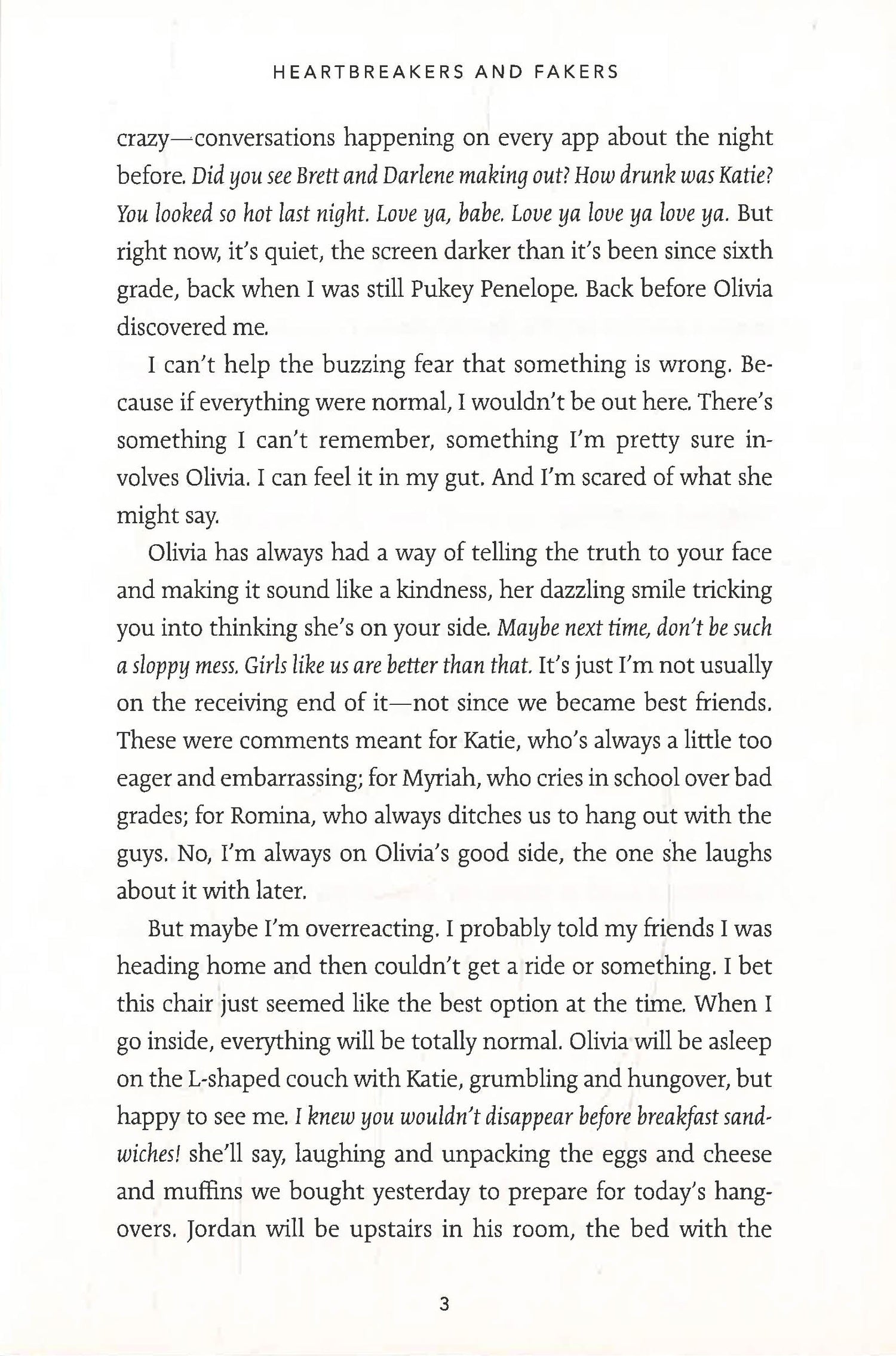 As one of the most popular girls in school, she's used to being invited to every party, is dating the Jordan Parker, and can't wait to rule senior year with her best friend, Olivia. But when Penny wakes up on Jordan's lawn the morning after his first-day-of-summer bash, she knows something went horribly wrong the night before.