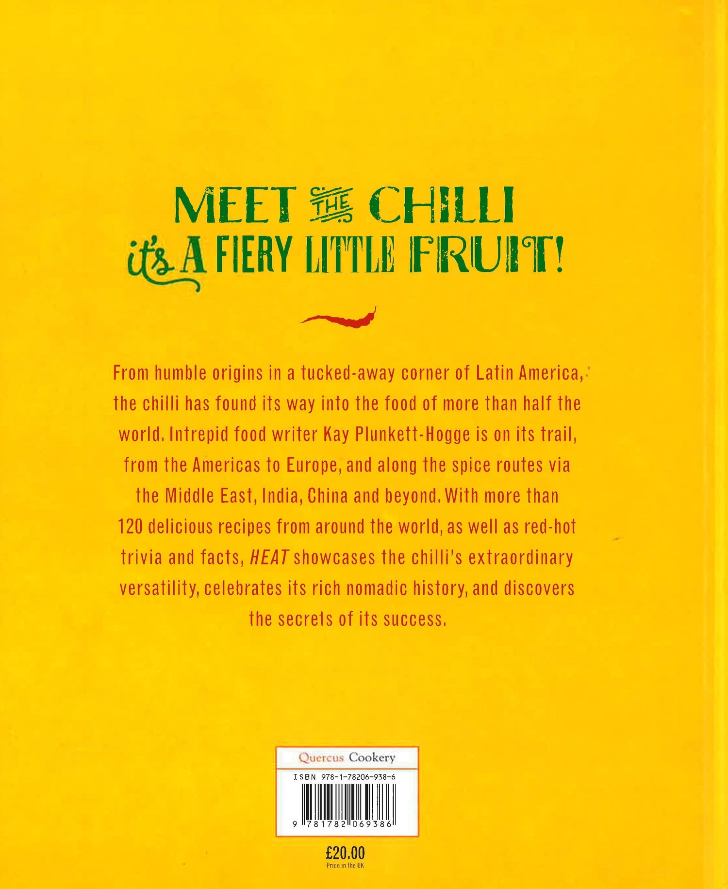 Meet the chilli. It's a fiery little fruit. From humble origins in a tucked-away corner of Latin America, it has found its way into the food of more than half the world. Intrepid food writer Kay Plunkett-Hogge is on its trail, following the chilli from the Americas to Europe, and along the spice routes to the Middle East, India, China and beyond. With more than 120 delicious recipes from around the world, including Thai, Indian and Mexican favourites, plus tantalising desserts with a difference, Kay showcases the chilli's extraordinary versatility, celebrates its rich and nomadic history, and discovers the secrets of its success.