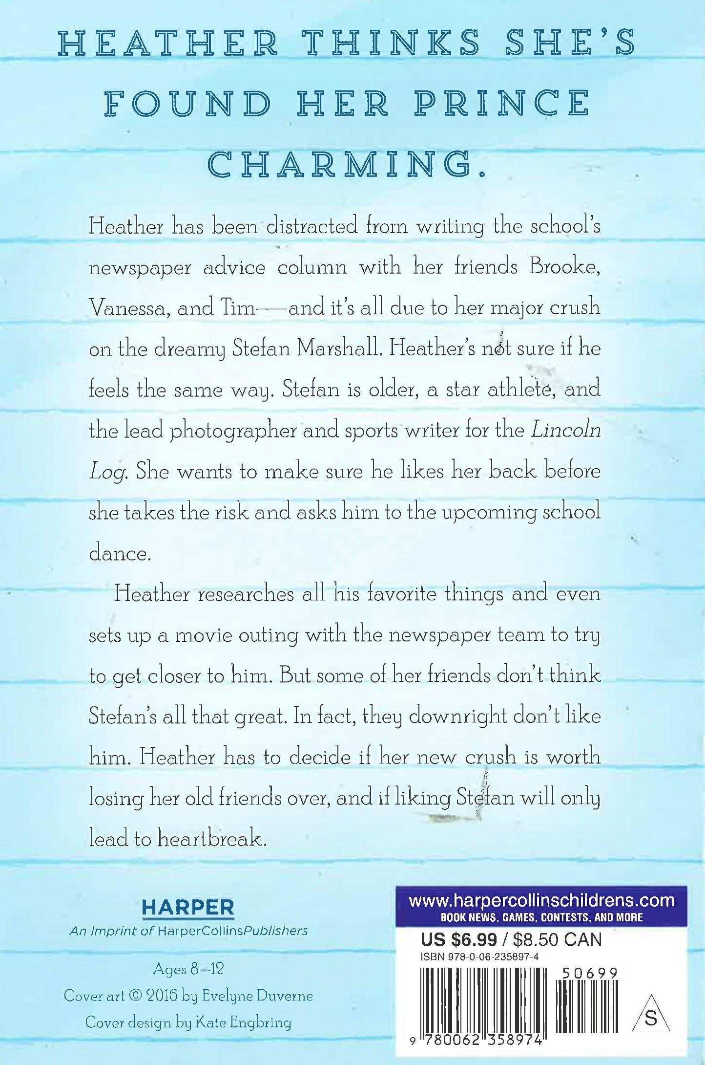 Heather has been distracted from writing the advice column with her friends Brooke, Vanessa, and Tim - and it’s all due to her major crush on the dreamy Stefan Marshall. Heather’s not sure if Stefan feels the same way. And she wants to make sure he likes her back before she takes the risk and asks him to the upcoming school dance.Heather researches all his favorite things and even sets up a movie outing with the newspaper team to try to get closer to him. But some of her friends don’t think Stefan’s all that great. In fact they downright don’t like him. Heather has to decide if her new crush is worth losing her old friends over, and if liking Stefan will only lead to heartbreak.