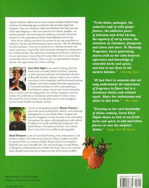 Cook fresh and vibrant dishes with this easy-to-follow and comprehensive Asian cookbook.In Heavenly Fragrance, award-winning chef and author Carol Selva Rajah brings you on an unforgettable journey of aromatic discovery in the preparation of foods from different parts of Asia. Inspired by fond memories of fragrant dishes from her childhood, Carol has always believed that what sets Asian cooking apart from other traditions is its vast array of highly fragrant and aromatic ingredients. In this book she sets out her definitive collection of new and classic recipes for cooks who wish to recreate the memorable flavors and aromas of Asia at home.The recipes in Heavenly Fragrance are organized according to the aromatic ingredients used-Asian Herbs, Fruits, Spices and Seasonings-which makes the creation of a meal as simple as picking and choosing from what you've already got stocked in your pantry. Delicious recipes include: Spring Rolls with Orange Chili Sauce Pineapple Lime Salsa with Mint Chicken Satay with Fragrant Spices and Coconut Eggplant Sambal with Black Mustard and Cashews Crab Soup with Lemongrass, Tamarind and Mint Green Mango and Saffron Lassi.