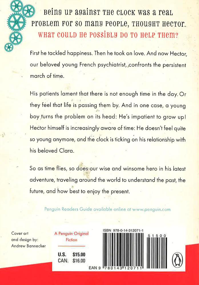 The delightful third book in the multimillion-copy internationally bestselling series "Being up against the clock was a real problem for so many people, thought Hector. What could he possibly do to help them? "First he tackled happiness. Then he took on love. And now Hector, our endearing young French psychiatrist, confronts the persistent march of time. His patients lament that there is not enough time in the day. Or they feel that life is passing them by. And in one case, a young boy turns the problem on its head: He's impatient to grow up! Hector himself is increasingly aware of time: He doesn't feel quite so young anymore, and the clock is ticking on his relationship with his beloved Clara. So as time flies, so does our wise and winsome hero in his latest adventure, traveling around the world to understand the past, the future, and how best to enjoy the present.