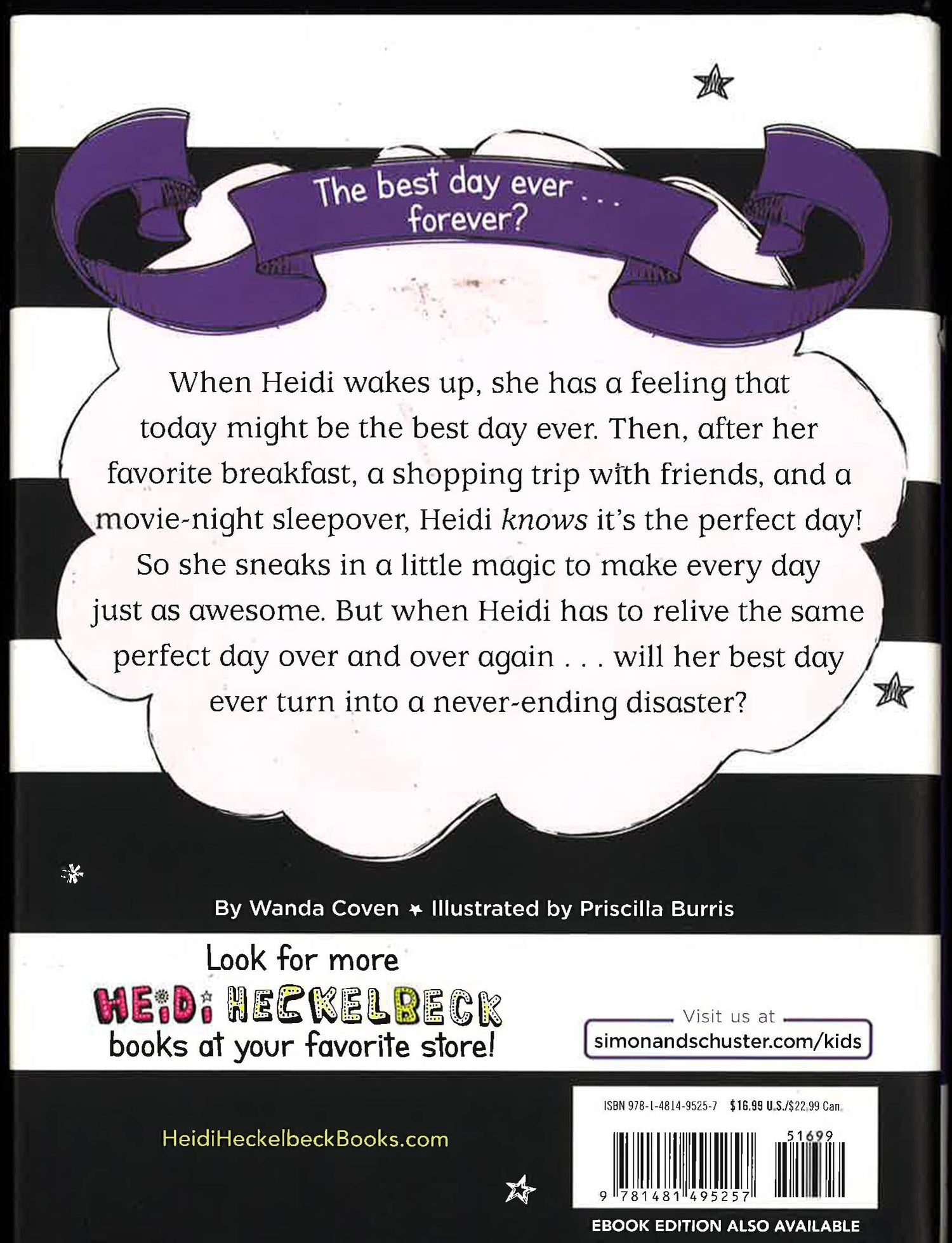 Heidi wishes her perfect day would never end in the twenty-first Heidi Heckelbeck adventure! When Heidi wakes up to a bird singing at her window, she has a feeling that this Saturday might be the best day ever. Then, after her favorite breakfast, a shopping trip with friends, and an incredible movie night sleepover, Heidi knows it's better than the best day. It's the perfect day! In fact, it's so good that Heidi sneaks in a little magic to make every day just as awesome. But when she wakes up to relive the same perfect day over and over again...will her best day ever turn into a never-ending disaster? With easy-to-read language and illustrations on almost every page, the Heidi Heckelbeck chapter books are perfect for beginning readers. *This book may have remainder mark.