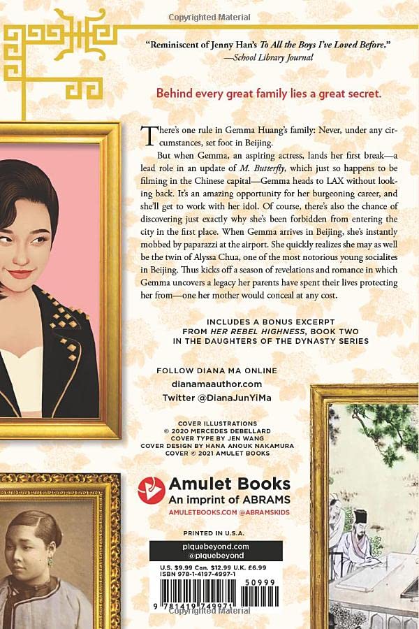 There’s one rule in Gemma Huang’s family: Never, under any circumstances, set foot in Beijing. But when Gemma, an aspiring actress, lands her first break―a lead role in an update of M. Butterfly, which just so happens to be filming in the Chinese capital―Gemma heads to LAX without looking back. It’s an amazing opportunity for her burgeoning career, and she’ll get to work with her idol. Of course, there’s also the chance of discovering just exactly why she’s been forbidden from entering the city in the first place. When Gemma arrives in Beijing, she’s instantly mobbed by paparazzi at the airport. She quickly realizes she may as well be the twin of Alyssa Chua, one of the most notorious young socialites in Beijing. Thus kicks off a season of revelations and romance in which Gemma uncovers a legacy her parents have spent their lives protecting her from―one her mother would conceal at any cost.