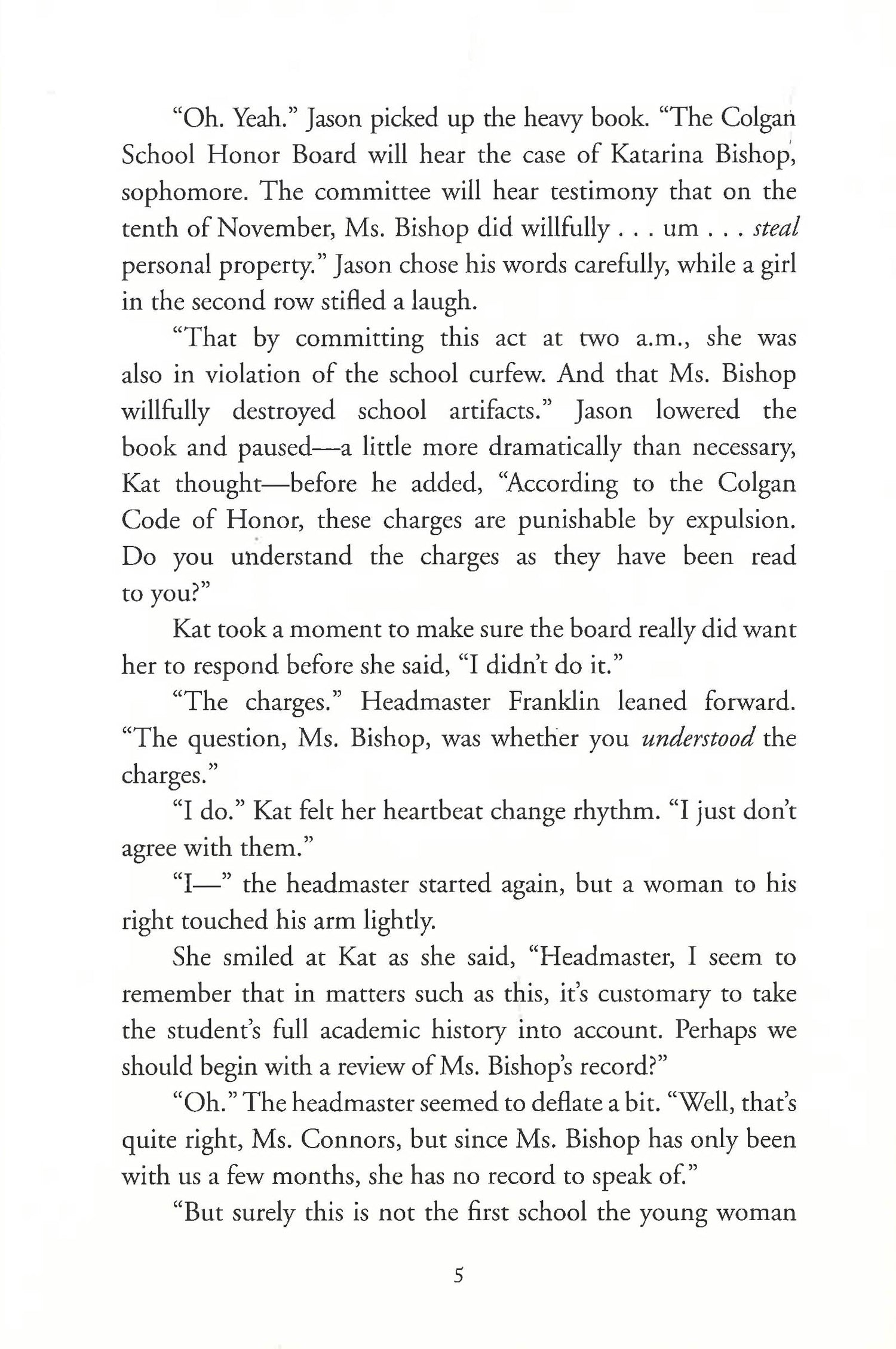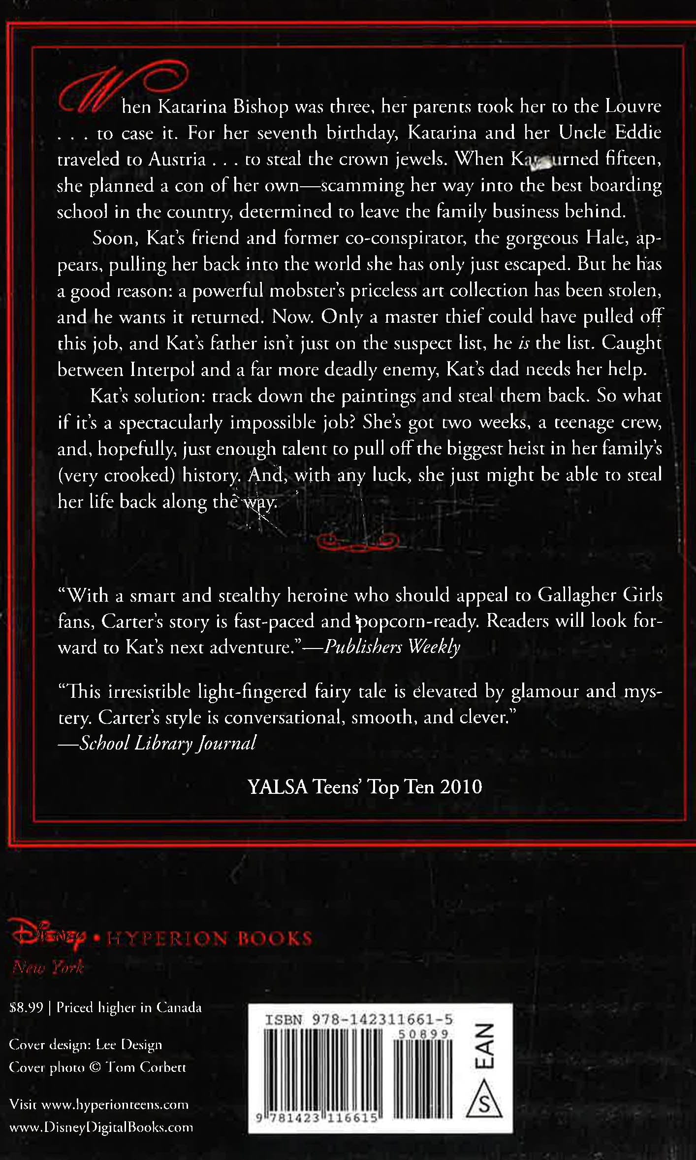 When Katarina Bishop was three, her parents took her on a trip to the Louvre . . . to case it. For her seventh birthday, Katarina and her Uncle Eddie traveled to Austria . . . to steal the crown jewels. When Kat turned fifteen, she planned a con of her own - scamming her way into the best boarding school in the country, determined to leave the family business behind. Unfortunately, leaving "the life" for a normal life proves harder than she'd expected. Soon, Kat's friend and former co-conspirator, Hale, appears out of nowhere to bring her back into the world she tried so hard to escape. But he has good reason: a powerful mobster has been robbed of his priceless art collection and wants to retrieve it. Only a master thief could have pulled this job, and Kat's father isn't just on the suspect list, he is the list. Caught between Interpol and a far more deadly enemy, Kat's dad needs her help. For Kat there is only one solution: track down the paintings and steal them back. So what if it's a spectacularly impossible job? She's got two weeks, a teenage crew, and hopefully just enough talent to pull off the biggest heist in history - or at least her family's (very crooked) history.