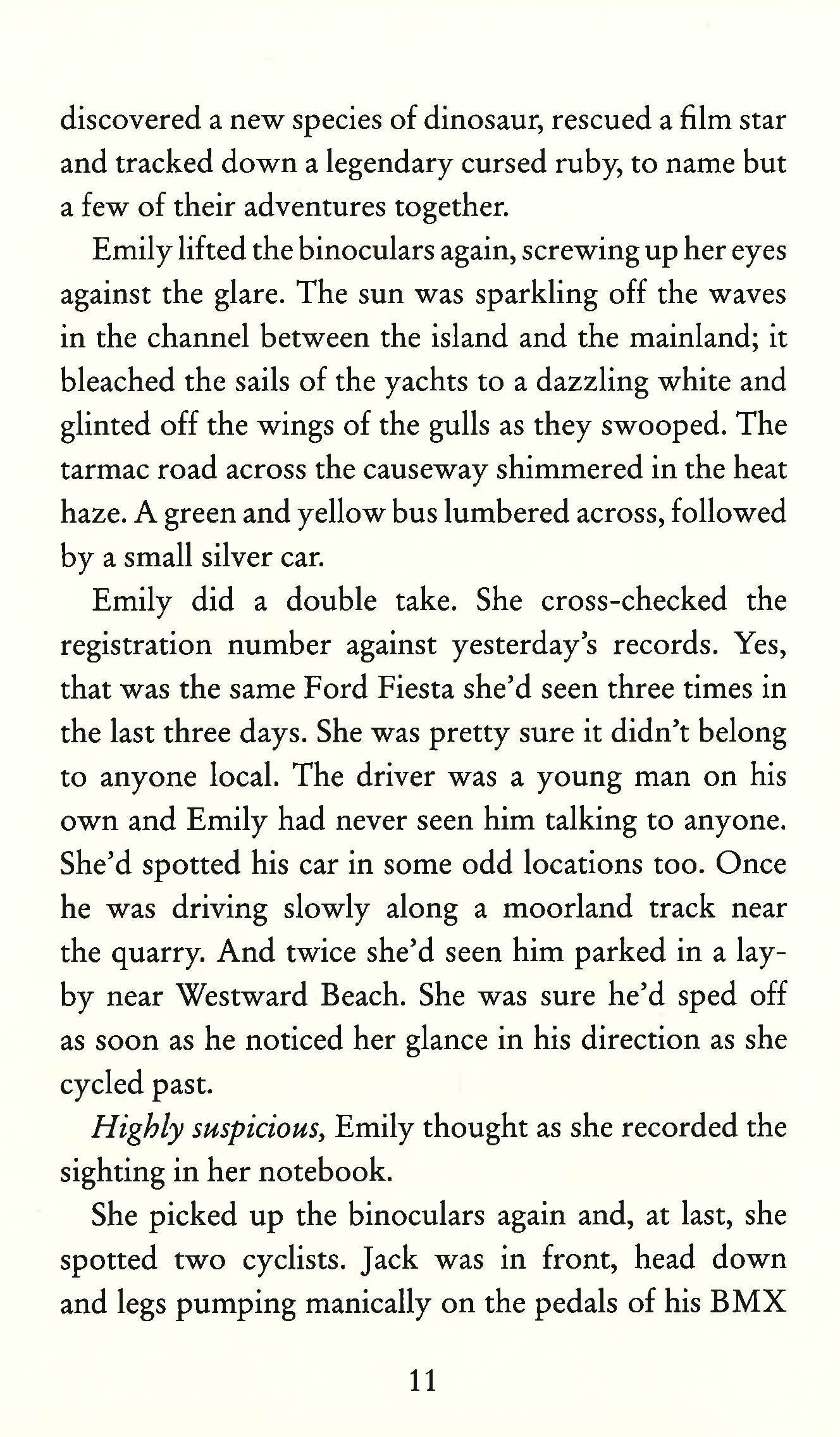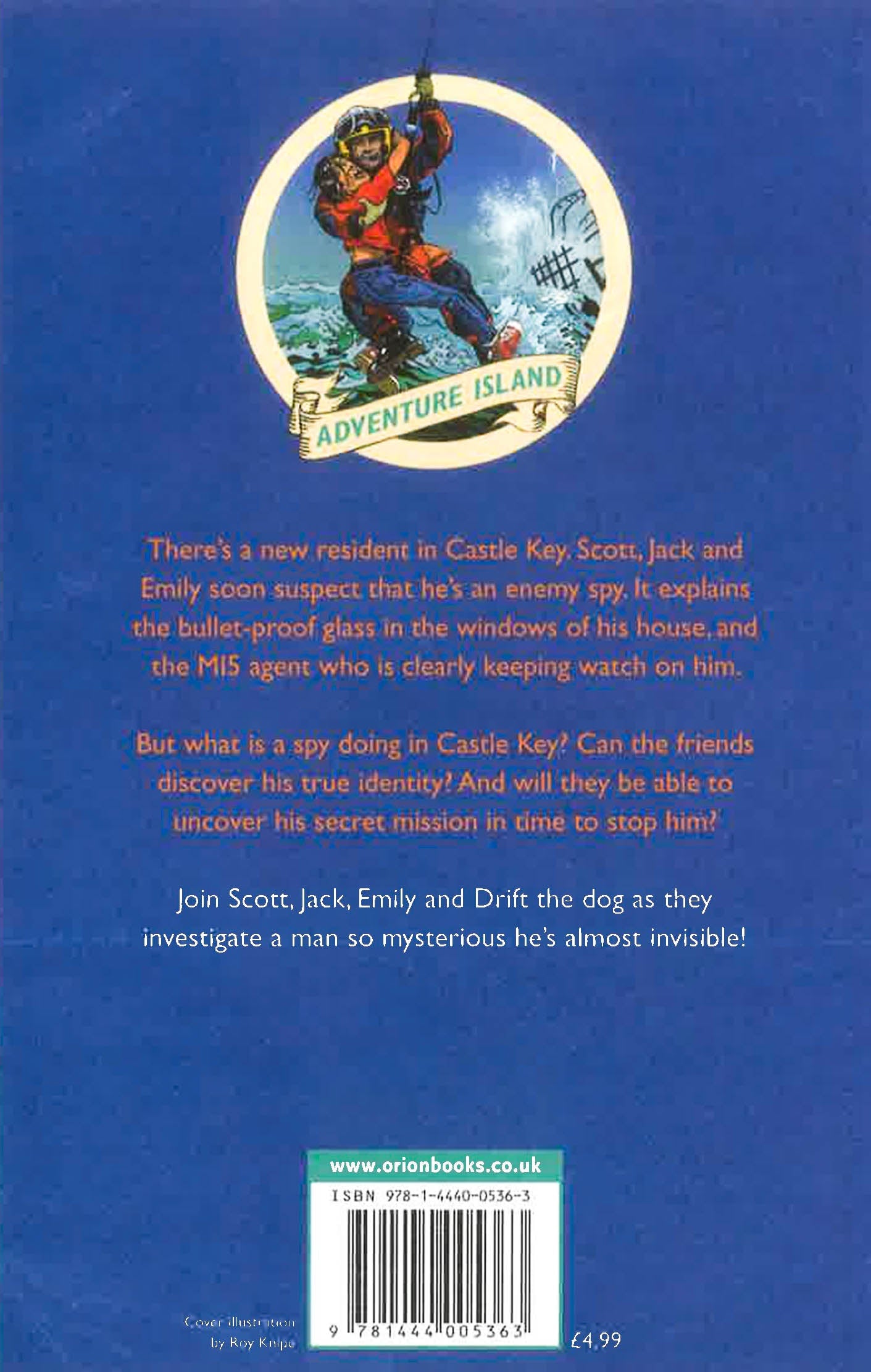 Jack, Scott, Emily and Drift the dog investigate the mysterious case of a spy in hiding in the tenth Adventure Island mystery. There's a new resident in Castle Key - and somebody is watching him! Scott, Jack, Emily and Drift soon suspect that the new resident is an enemy spy. It explains the bullet-proof glass in the windows of his house. And the MI5 agent who is clearly keeping tabs on him! But what is an enemy spy doing in Castle Key? Can the friends reveal his true identity? And uncover his top secret mission? Join Scott, Jack, Emily and Drift as they investigate a man so mysterious he's almost invisible!